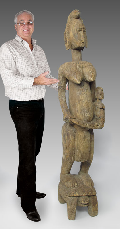 AFRICAN GUANDUSU FIGURE WITH CHILD STANDING ON A TORTOISE: Bamana, Mali 63'' x 14'' x 17''
