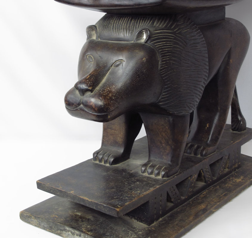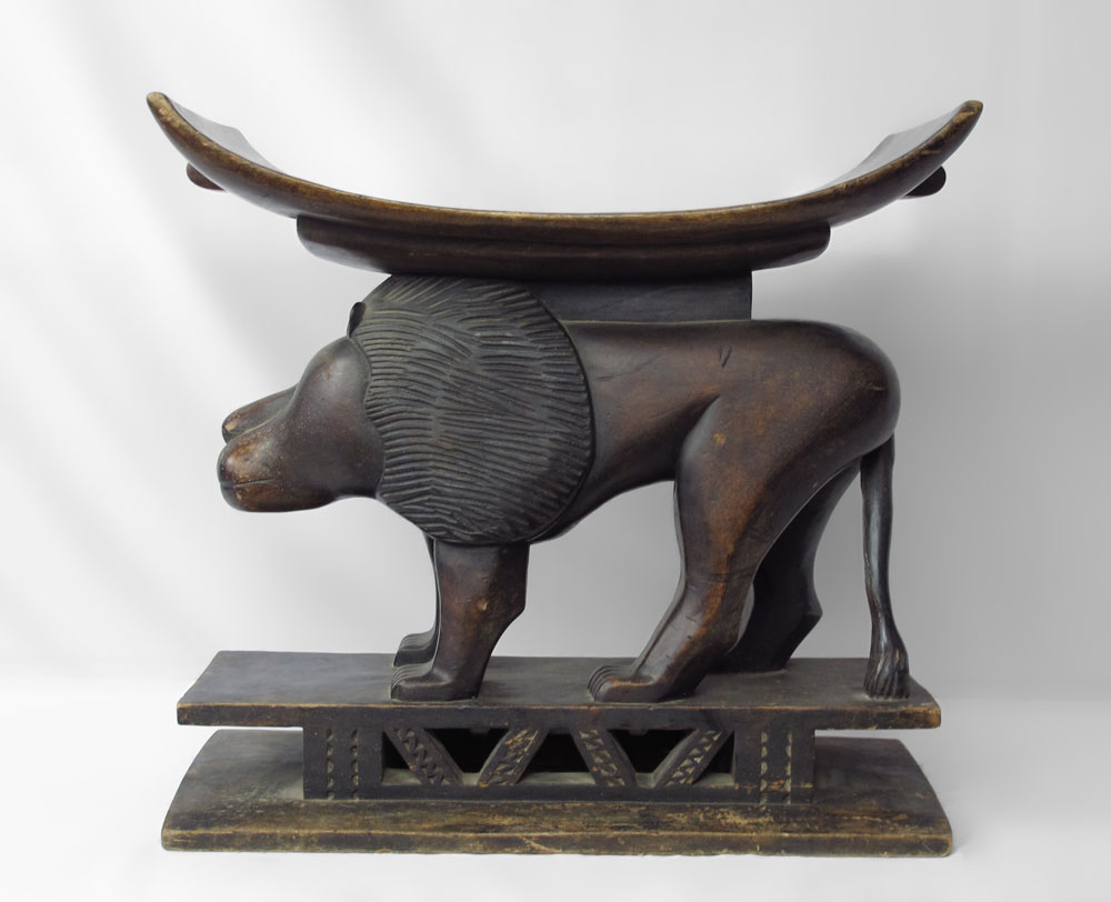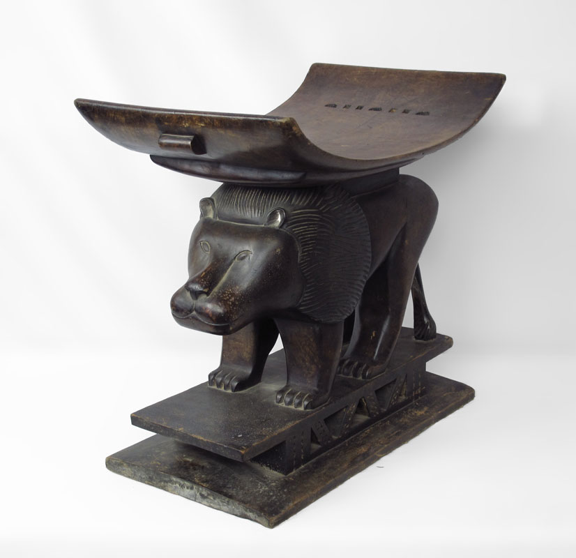 AFRICAN ASHANTI PALACE STOOL WITH LION FROM GHANA, approx. 23'' x 15 1/2'' x 24 1/2''