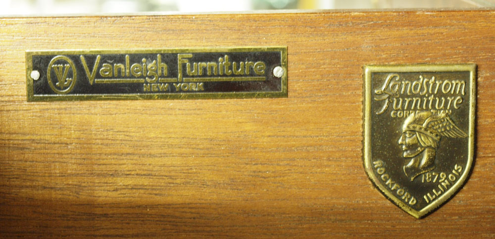 DIMINUTIVE HIGHBOY BY LANDSTROM FURNITURE: Eight drawer chest, fretted pediment, 8 drawers. Retailed by Vanleigh New York. 71'' tall x 33 1/2'' x 19 1/2''.
