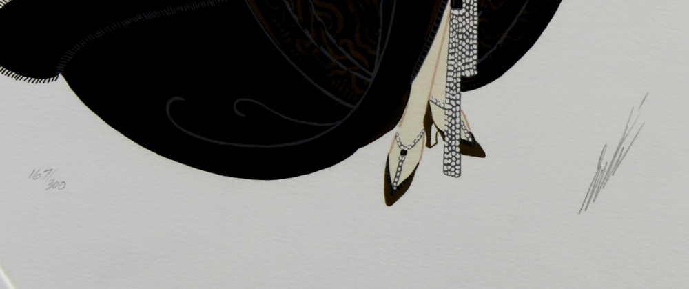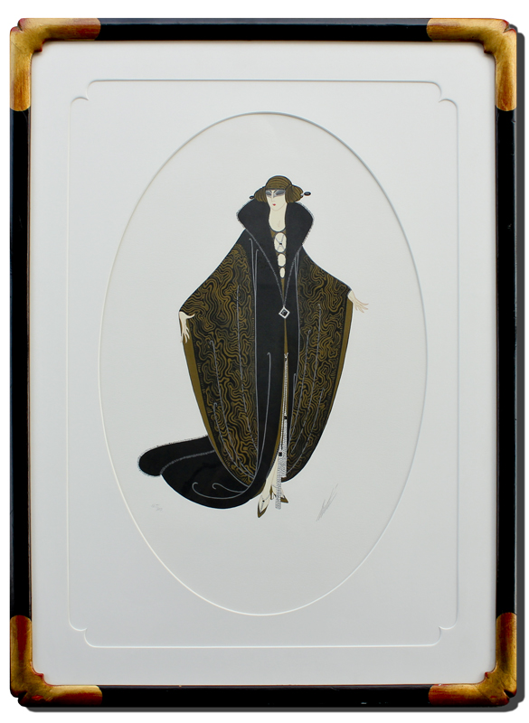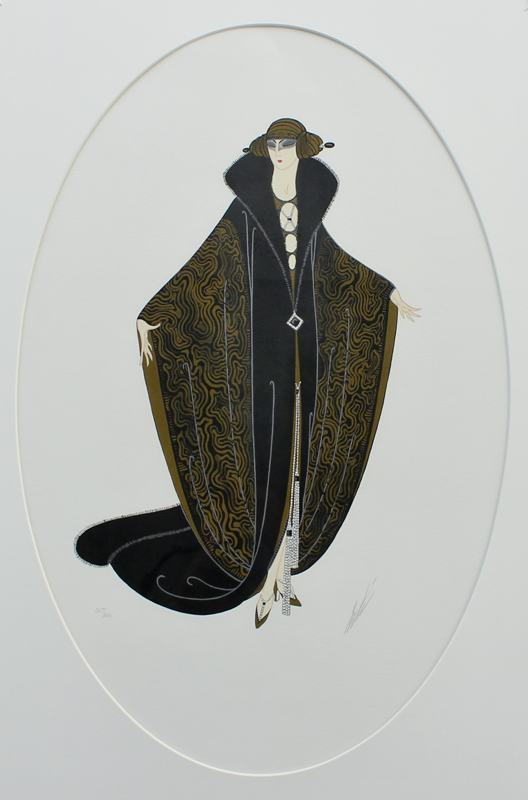 ERTE, (Russian, 1882-1990): Golden Cloak, Lithograph, sight size oval 22'' x 15'', pencil signed lower right, #'ed 167 of 300 lower left, custom ebonized and gilded frame, 30 1/2'' x 23 1/2''.