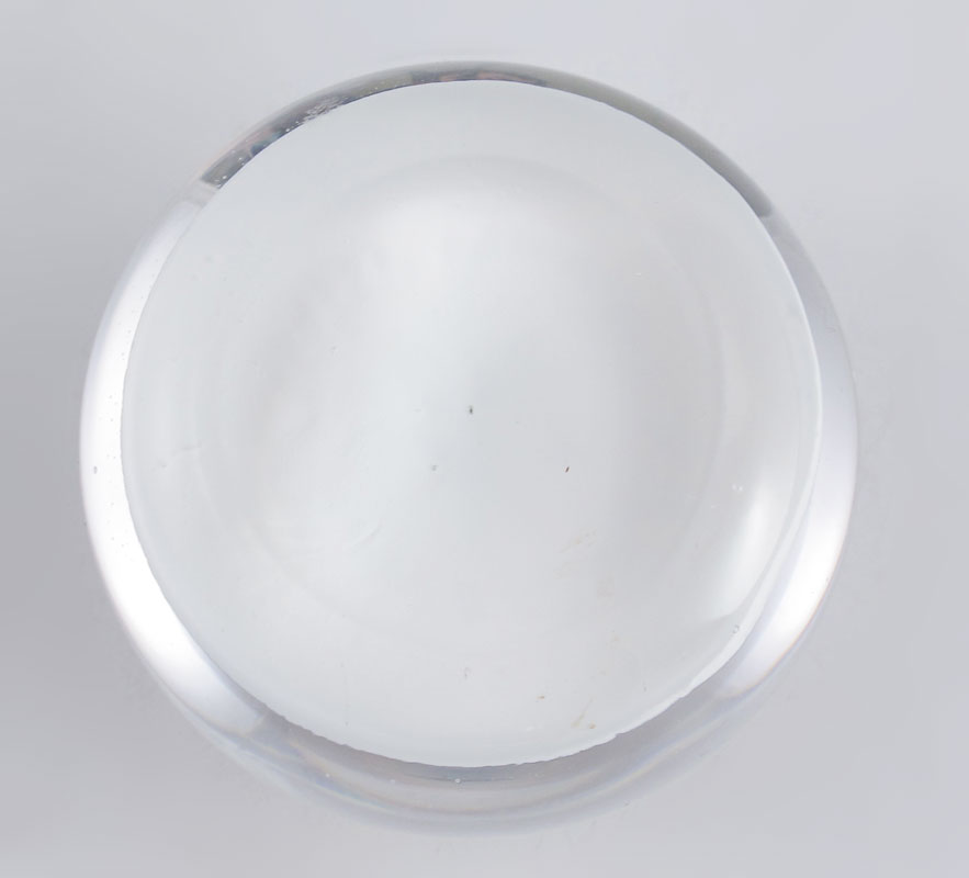 CHARLES KAZIUN POINSETTIA PAPERWEIGHT: Signed with the silver K. Pink and white twist centering the red and green poinsettia flower. Approx. 2 1/2'' dia.