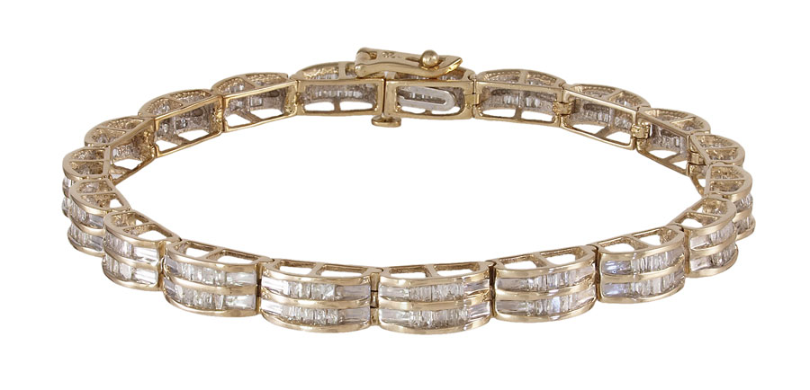 1.50 CTW DIAMOND BRACELET: Two rows of channel set diamonds in a 10K yellow gold bracelet that contains approx. 190 baguette cut diamonds. Weight: 1.50 Ct. Approx. The diamonds average I1 in clarity and I-J in color. The diamonds are channel set. Figure eight safety clasp. Length: 7'' Weight: 12.1 grams.