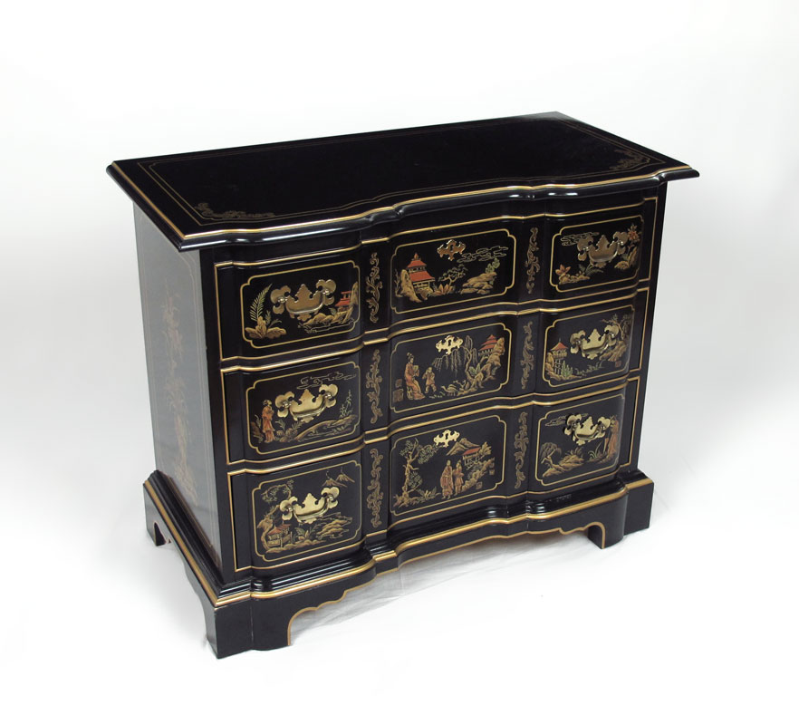 DREXEL ET CETERA CHINOISERIE 3 DRAWER DRESSER: Shaped front with 3 drawers. 30 3/4'' h. x 37 1/2'' x 19''.