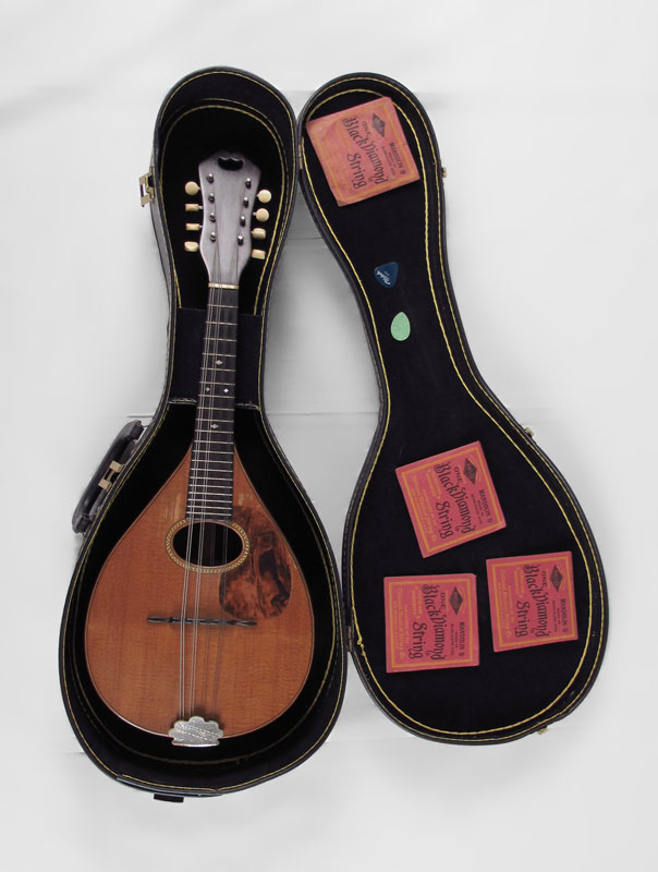 1920 C. F. MARTIN STYLE A MANDOLIN: Rosewood back and sides, string inlay on back. 8 string with tortoise shell appearance pickguard. Marked C.F. Martin & Co. Nazareth PA inside stretcher and back of top, serial number 8409 dates to 1920. Measures 24 1/2'' l. Sold with replacement case, 4'' x 28 3/4'' x 11 1/2''.