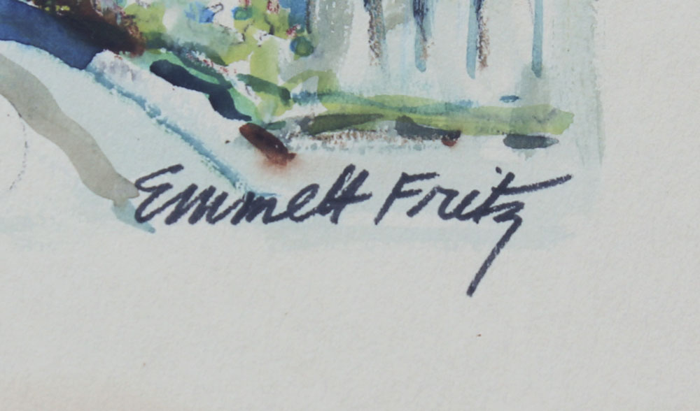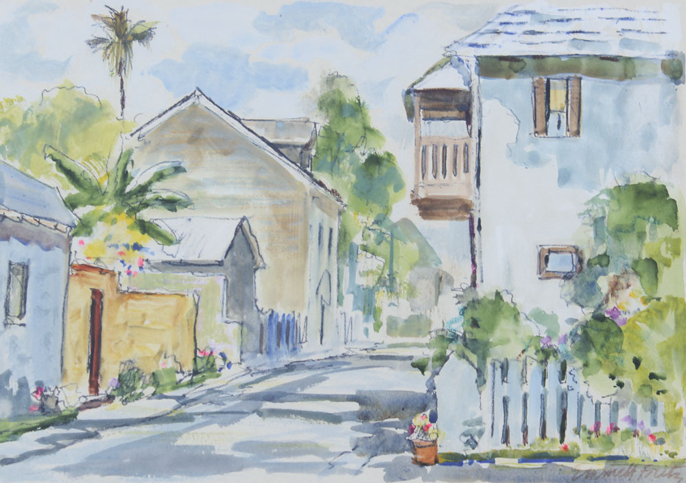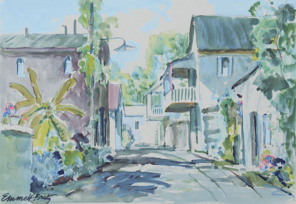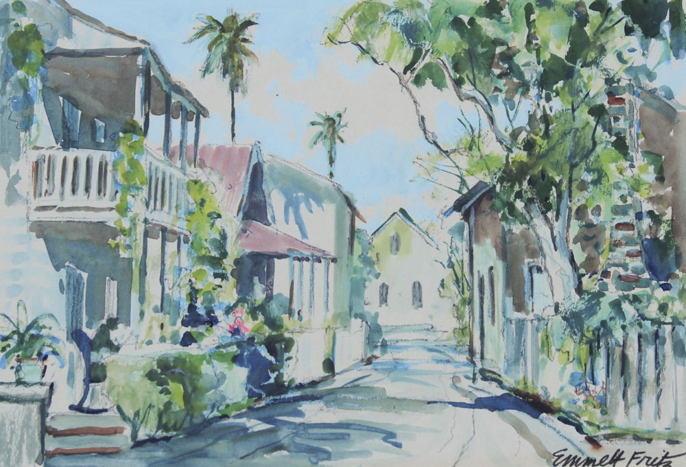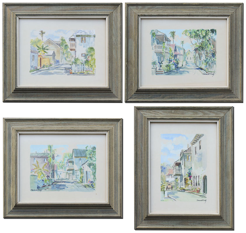 FRITZ, Emmett, (American, 1917-1995): 4 St Augustine Street Scenes, Image size (varying horizontal/vertical), 7'' x 10'', Pencil Watercolor and Gouache, pencil signed, framed, 15 1/2'' x 18 1/2''.
