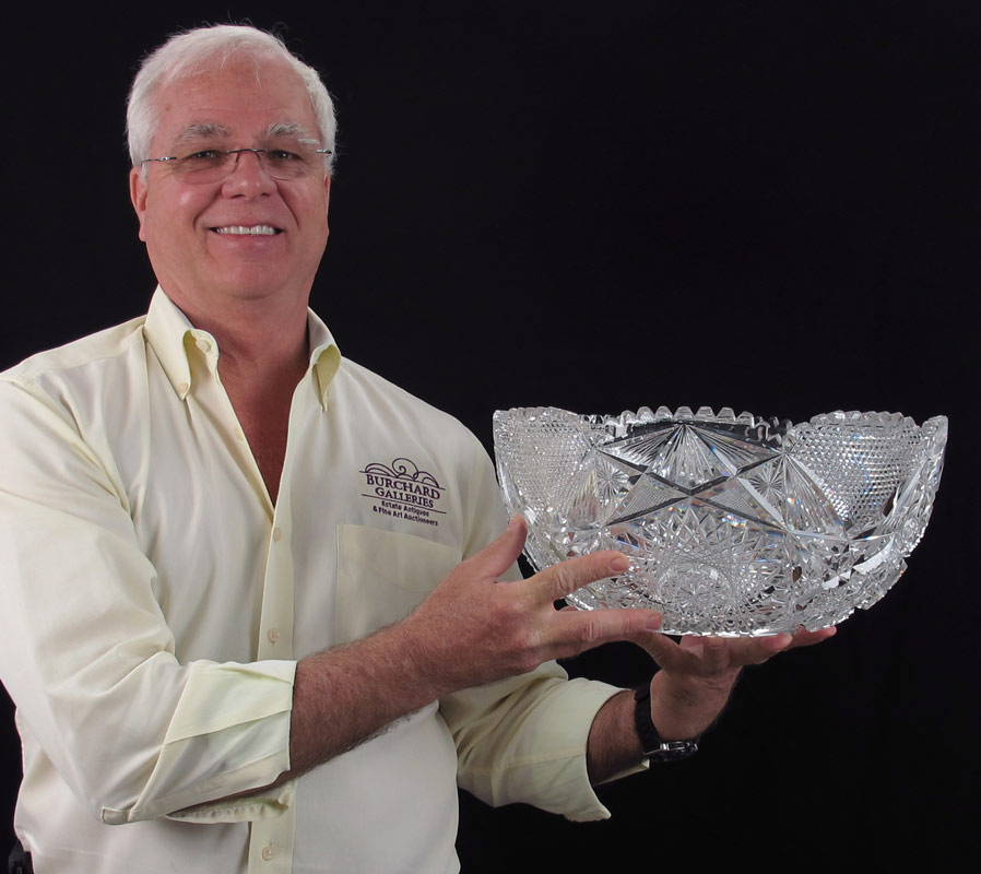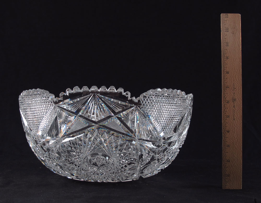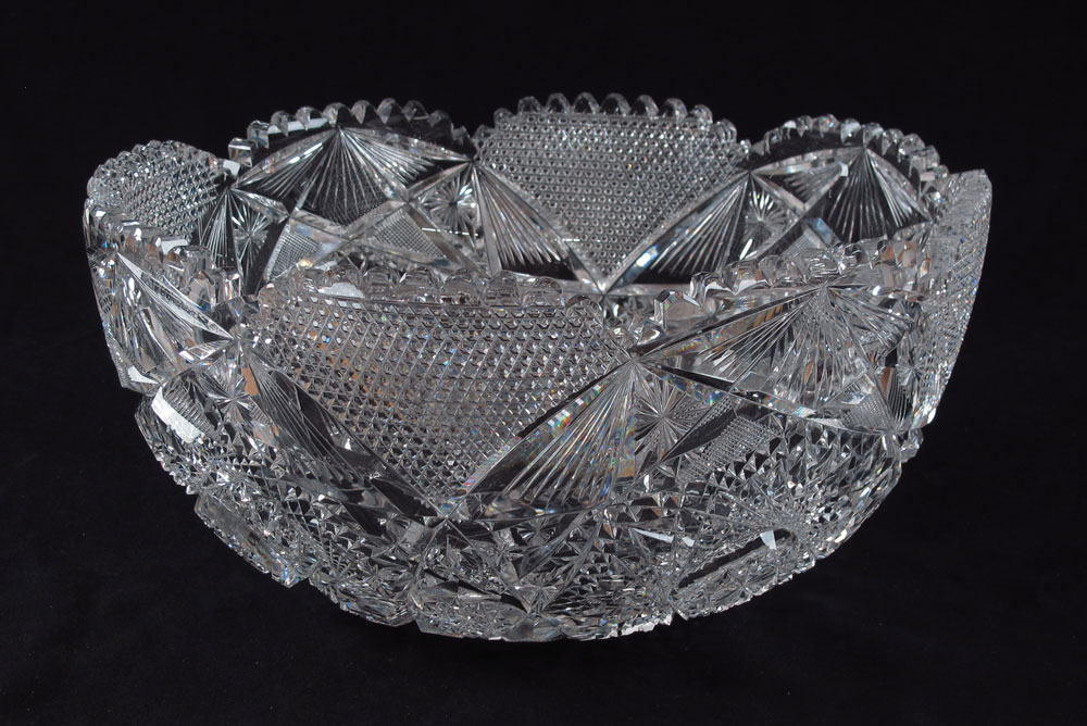 AMERICAN BRILLIANT PERIOD CUT GLASS PUNCH BOWL: Measures 14'' dia. 6 1/2'' tall.