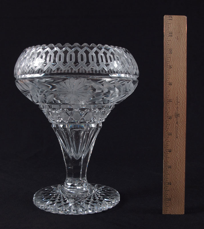 AMERICAN BRILLIANT CUT GLASS COMPOTE: 10 1/4'' h. x 8 1/4''.