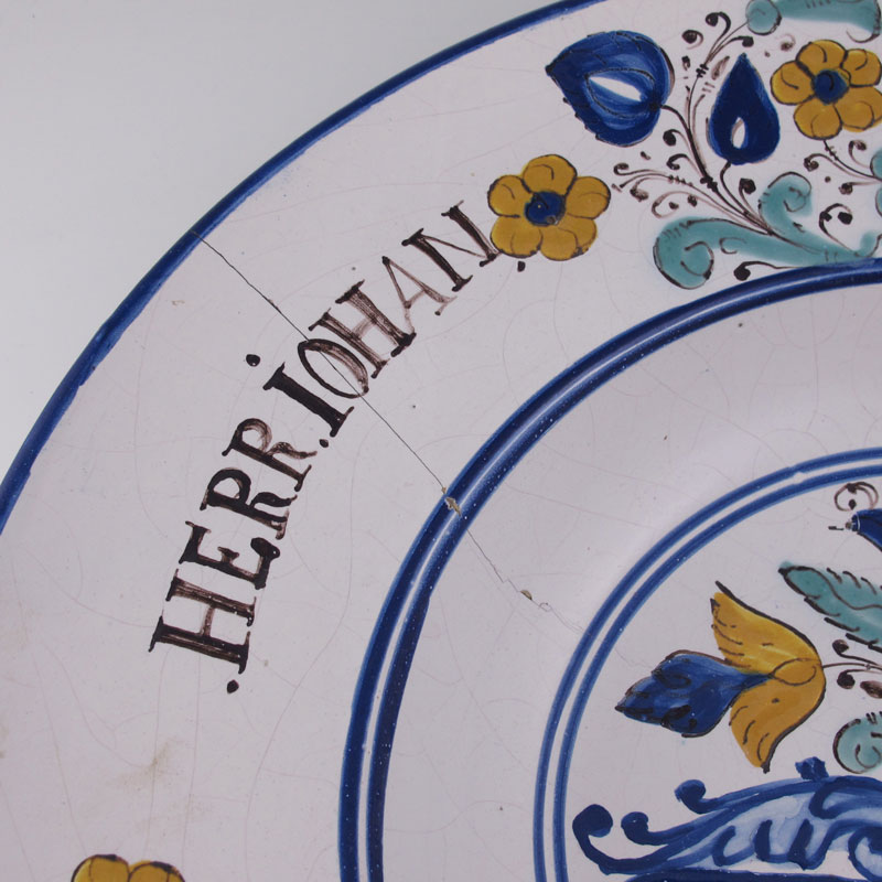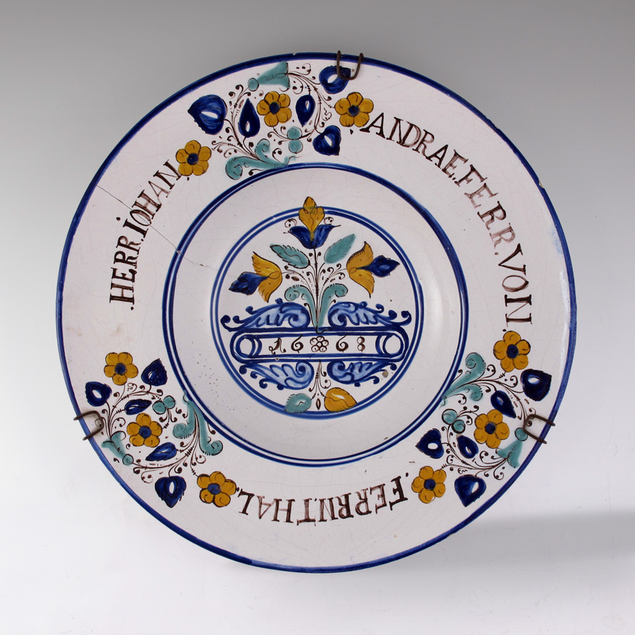EARLY DUTCH FAIENCE EARTHENWARE BOWL: 13 1/4'' dia. Dated 1668.