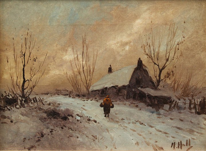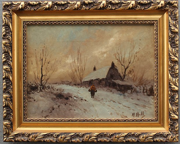 THE LONELY WALK HOME: OIL/Canvas, illegibly signed H. Hall?, 9'' x 12'', contemporary frame, 12 1/2'' x 15 1/2''.