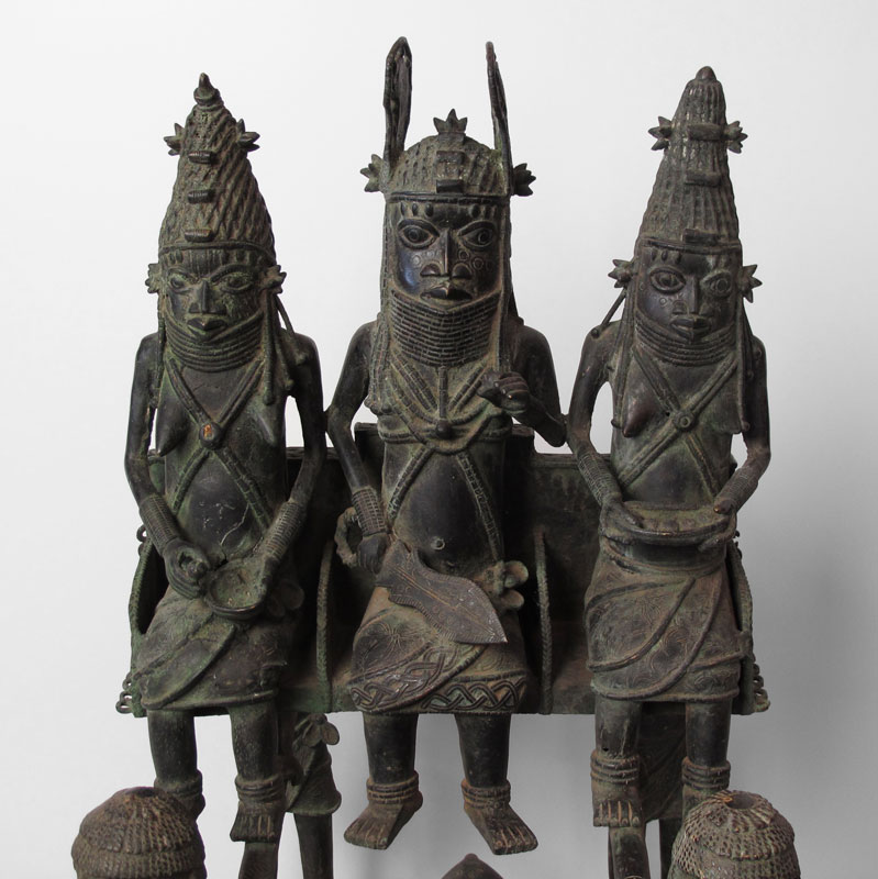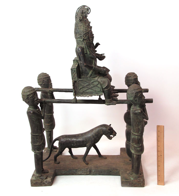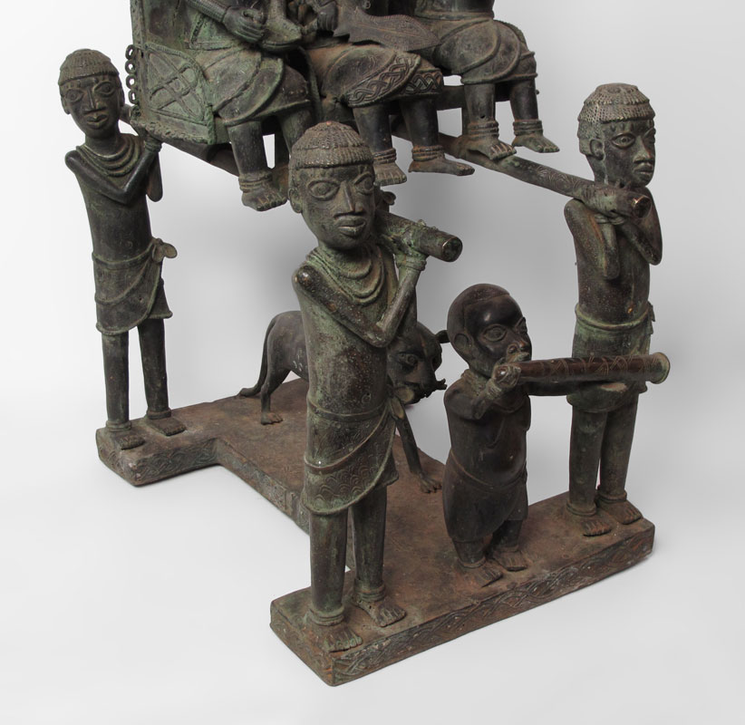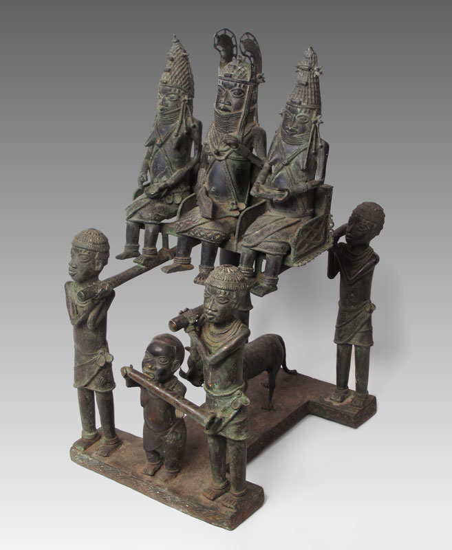 AFRICAN BENIN ROYAL PROCESSION SCULPTURE: Representing the king and his chiefs. 35'' h. x 16 3/4'' x 25 1/2''.