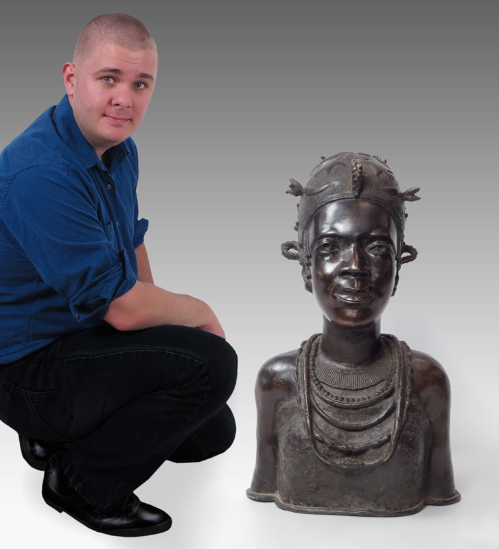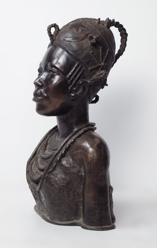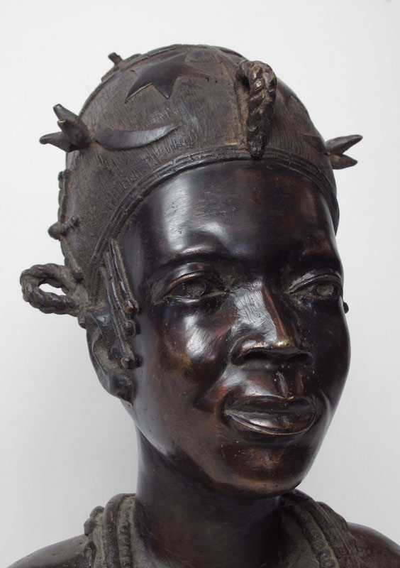 UNUSUAL AFRICAN CAST METAL HEAD SCULPTURE: Unusual Queen decorated with stars. Approx. 2' x 10'' x 8''.