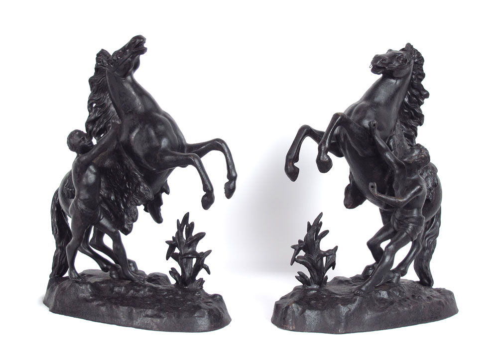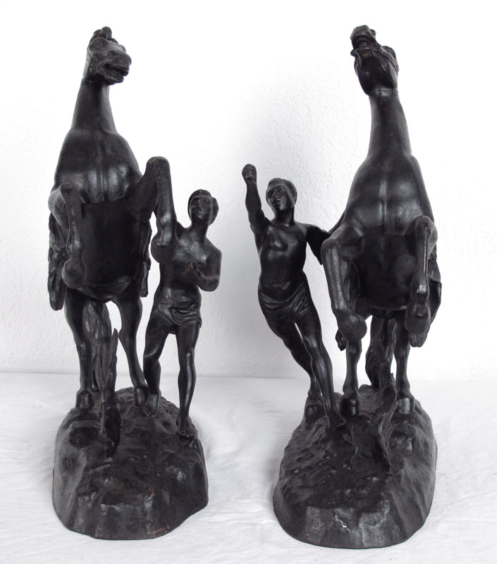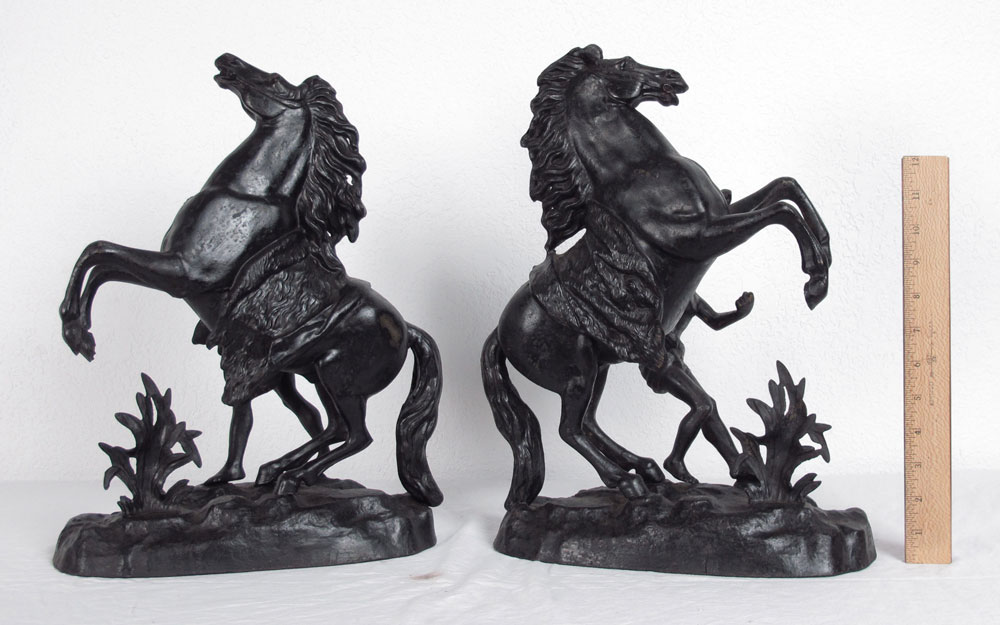 PAIR OF PATINATED SCULPTURES AFTER COUSTOU'S MARLY HORSE: 15'' h.