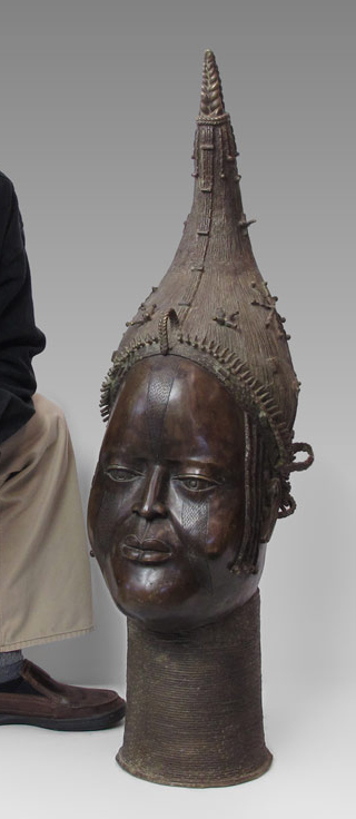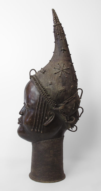 AFRICAN BENIN METAL SCULPTURE MODEL OF THE QUEEN MOTHER: 3' 7'' h. x 1' x 1' 5''.