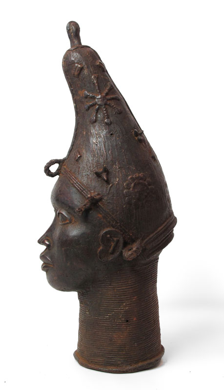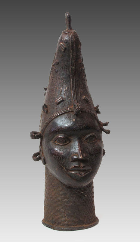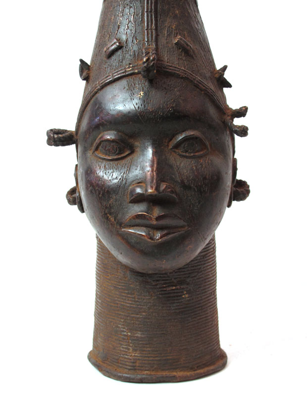 BENIN AFRICAN SCULPTURE OF QUEEN MOTHER HEAD: 25 1/2'' h. x 10'' x 10''