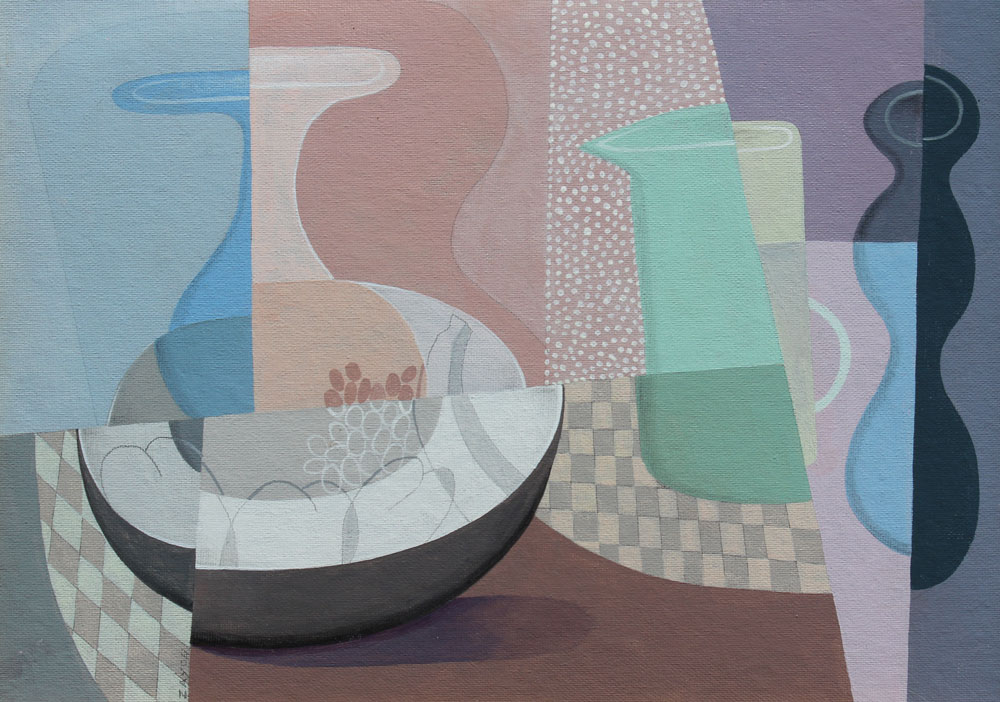 ZAYON, Seymour, (American, 1930-): Modernist Still Life, OIL/Canvasboard, 12'' x 16'', signed lower left, encased in a carved wooden frame, 18'' x 22''.