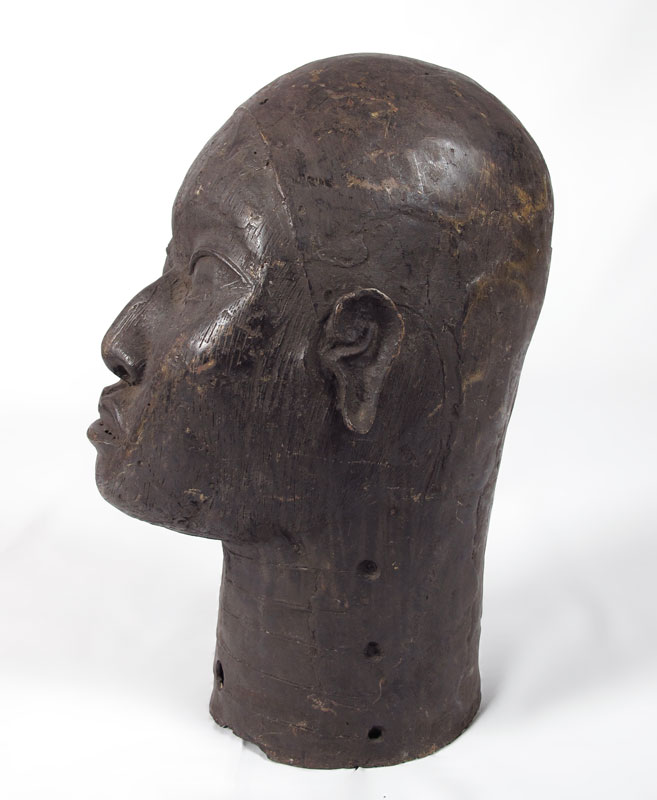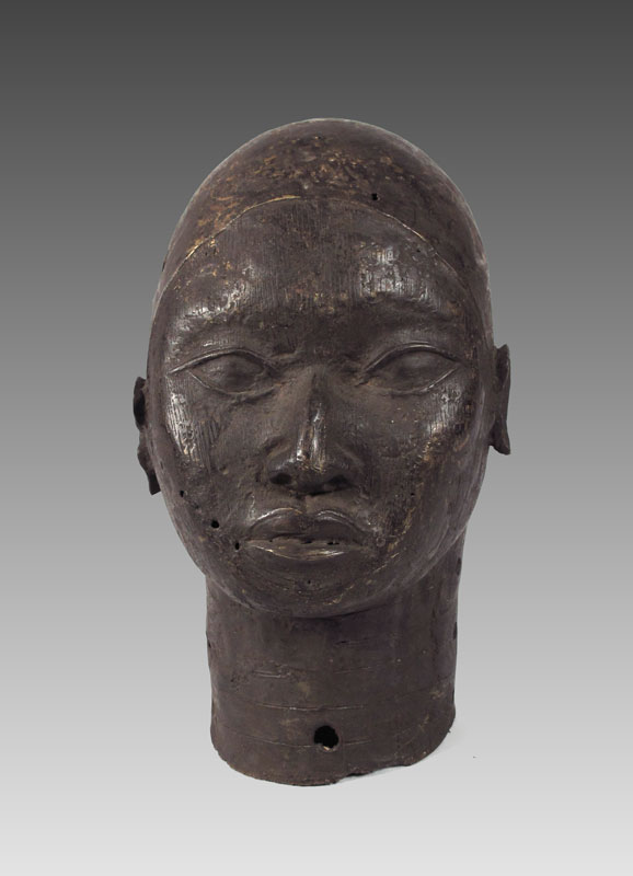 LARGE IFE AFRICAN BRONZE HEAD SCULPTURE: Ife (now modern southwest Nigeria), cast metal head, 21'' h. x 10 1/2'' x 14''.