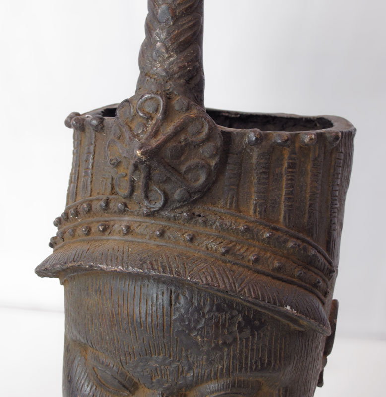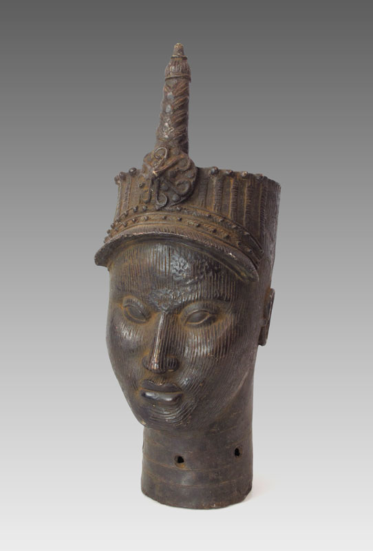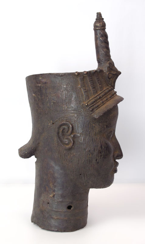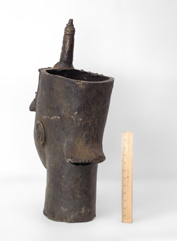 LARGE IFE AFRICAN METAL HEAD SCULPTURE: Approx. 27'' h. x 10 1/2'' x 14 1/2''