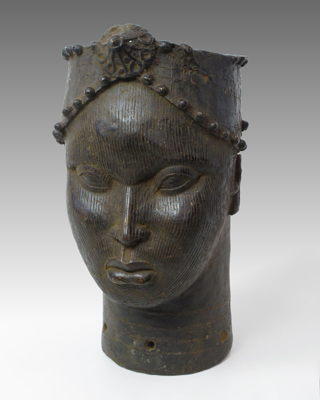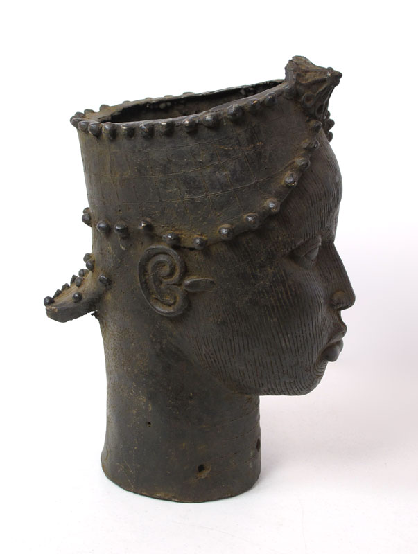 IFE AFRICAN BRONZE BUST SCULPTURE: 21'' h. x 11'' x 14''.