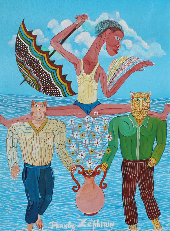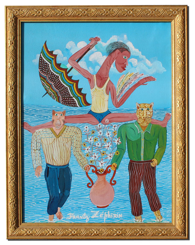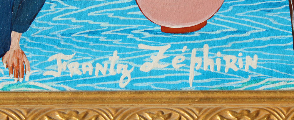 ZEPHIRIN, Frantz, (Haitian, 20th Century): ''Sun Umbrella'', OIL/Canvas, 16'' x 12'', signed in lower margin, framed, 18'' x 14''.
