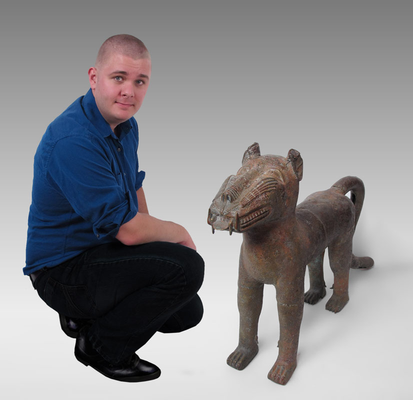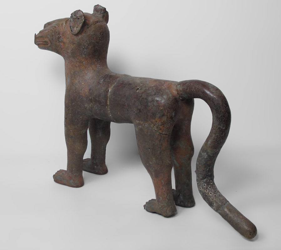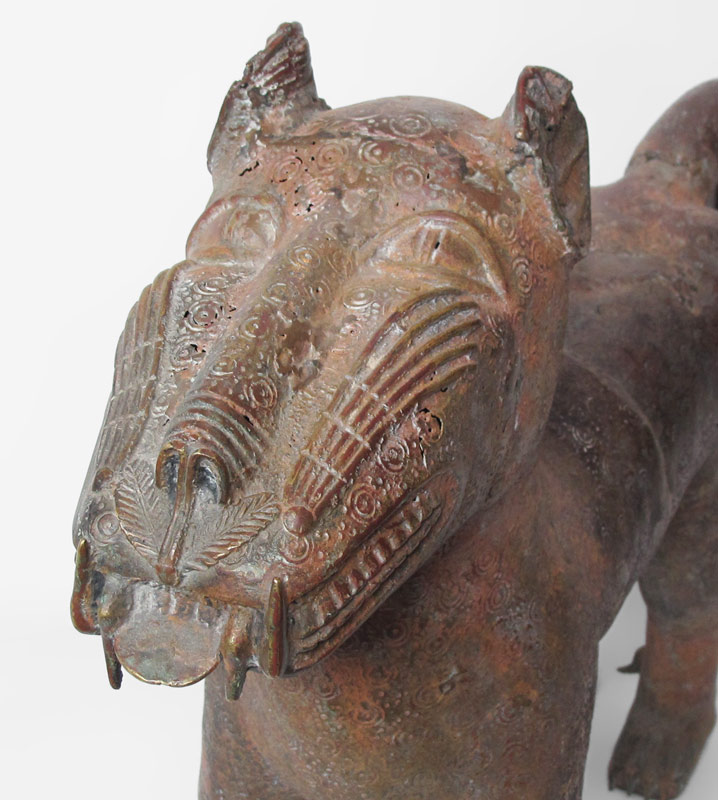 BENIN AFRICAN METAL LEOPARD SCULPTURE: 25'' h. x 36'' x 7''.
