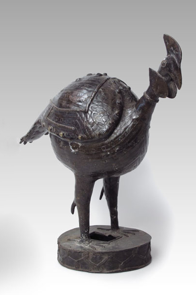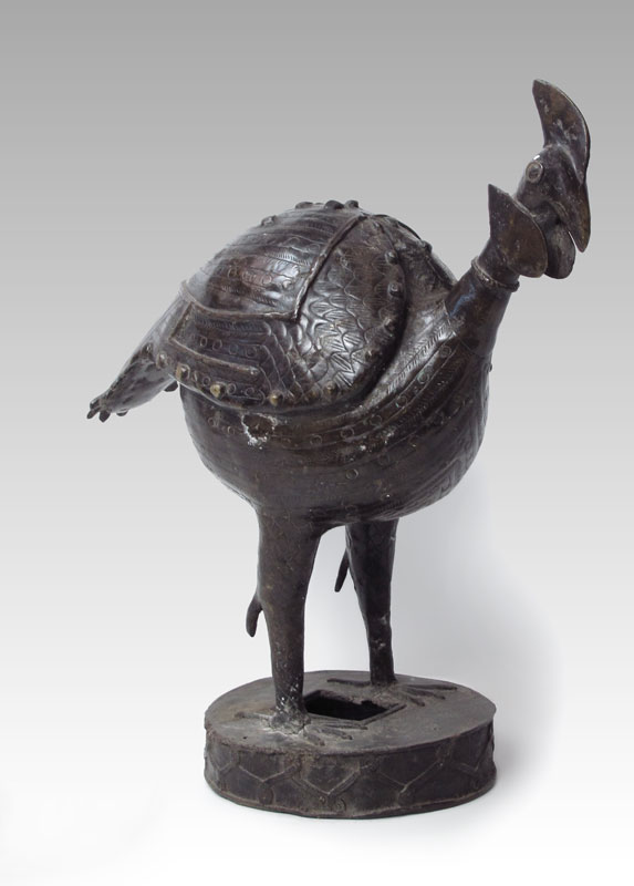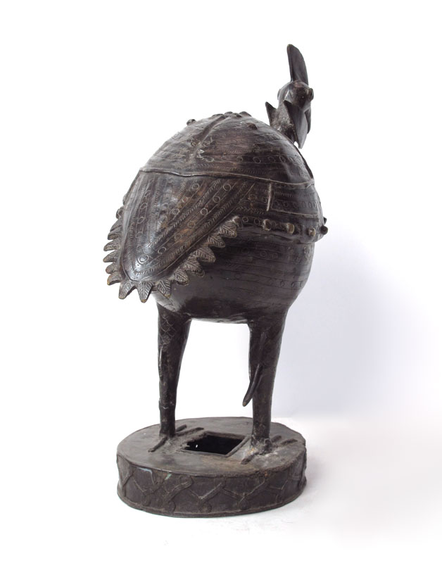 AFRICAN BRONZE GUINEA HEN SCULPTURE: Approx. 21 1/2'' x 9 1/2'' x 20 1/2''.