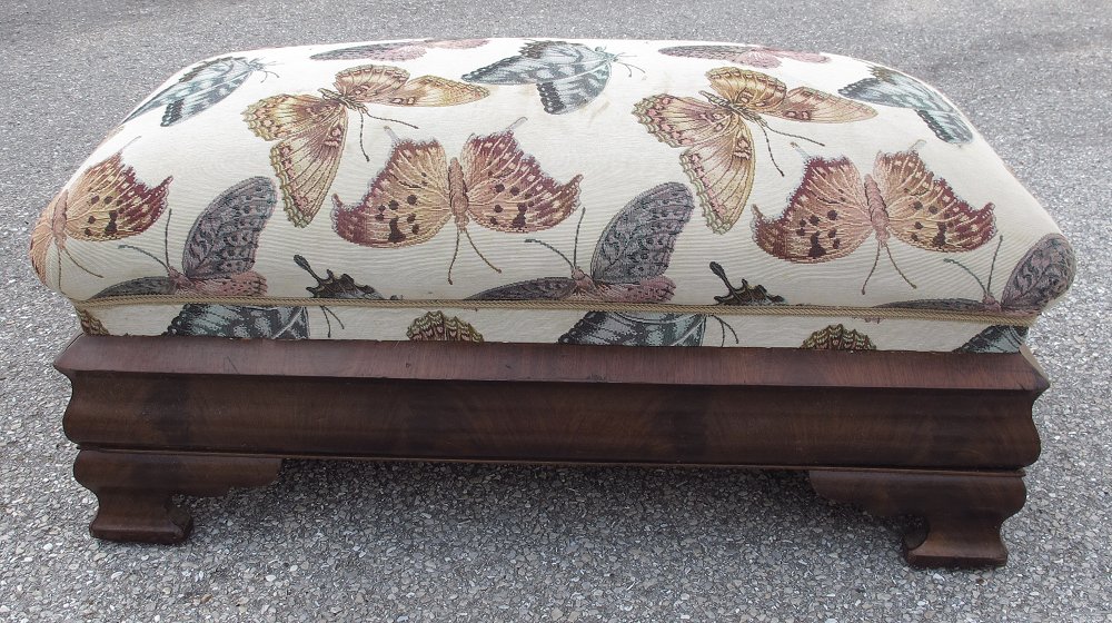 AMERICAN EMPIRE PERIOD OTTOMAN: Later butterfly upholstery. 15'' h. x 36'' x 18''.