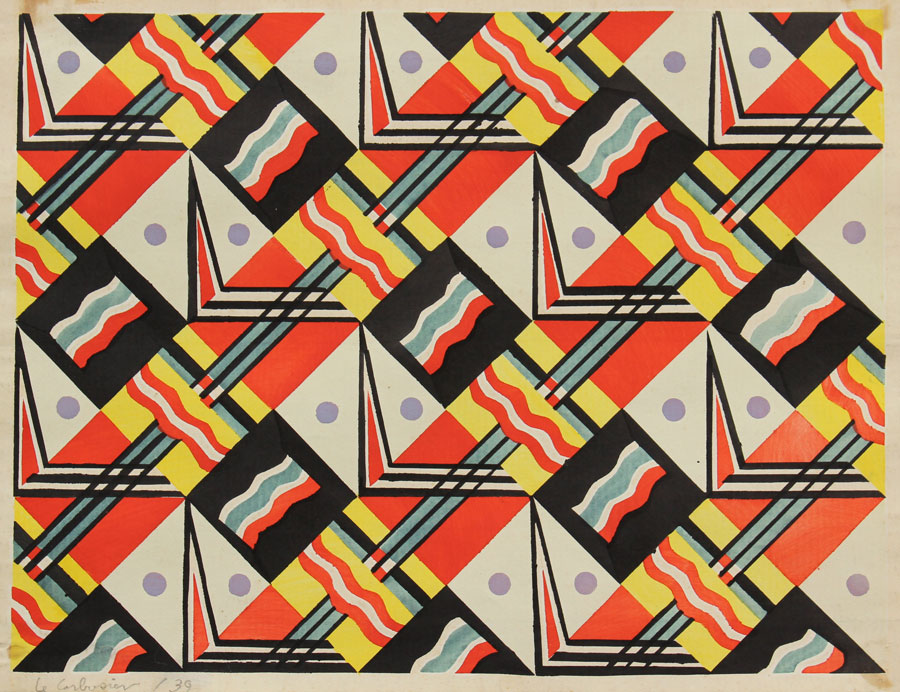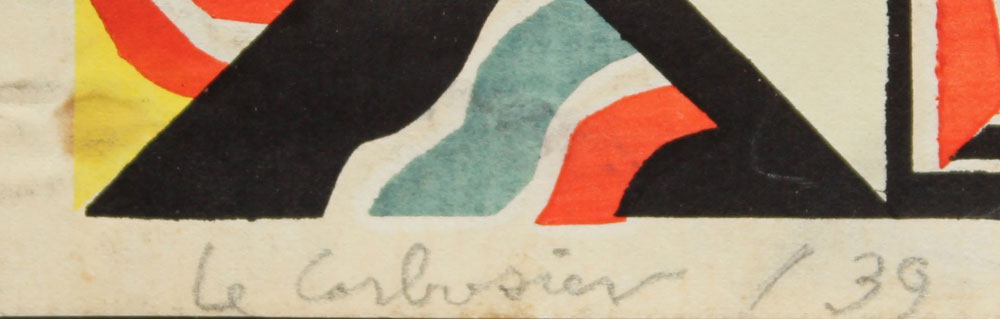 LE CORBUSIER, (Charles-Edouard Jenneret), AFTER, (French, 1887-1965): Geometric Pattern, Watercolor and Gouache, sight size 8'' x 9 3/4'', signed lower left and dated '39, framed, 13 1/8'' x 17 1/8''.