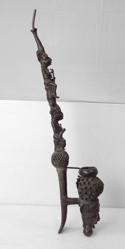 BAMUN AFRICAN FIGURAL PIPE: 3' 11'' x 9'' x 19 1/2''.