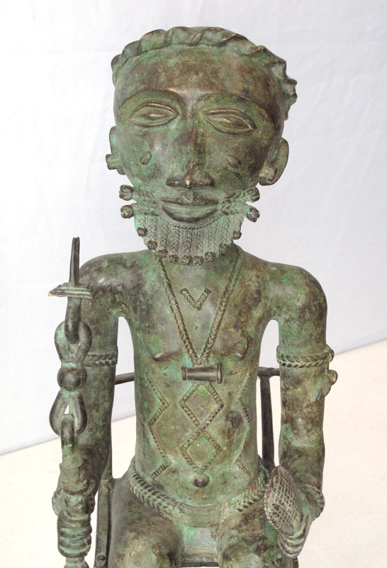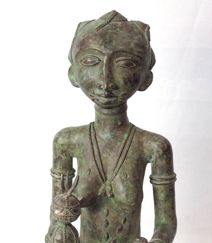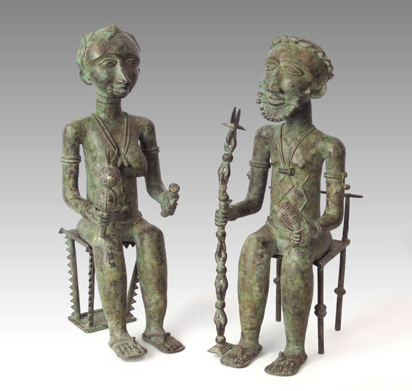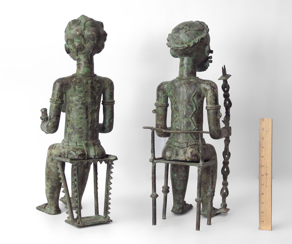 AKAN GHANA AFRICAN FIGURES OF SEATED MAN AND WOMAN SCULPTURE: Approx. 23'' tall x 8'' x 12''.