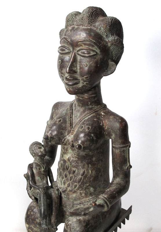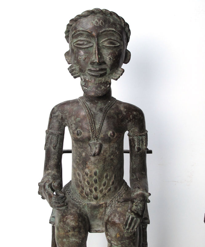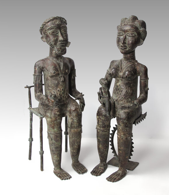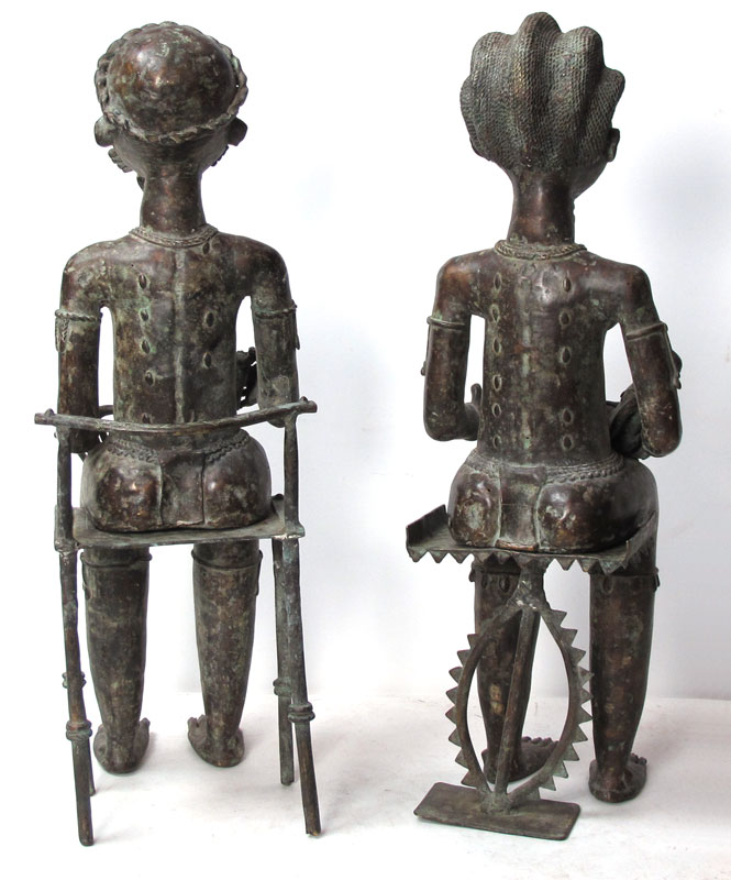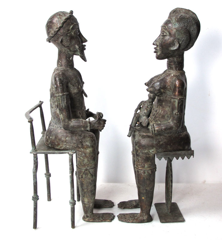 AKAN BAULE AFRICAN STATUES OF ROYAL COUPLE SCULPTURE: Each measures approx. 28 1/2'' h. x 11 1/2'' x 10''.