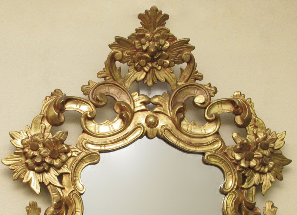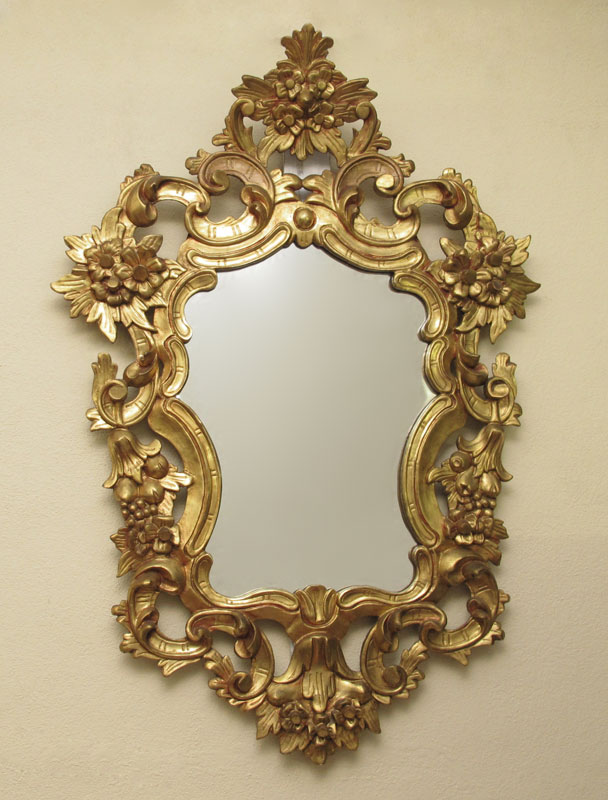 CARVED GILT WOOD MIRROR: Gilt carved frame with floral motif. Approx 53'' h. x 36''.