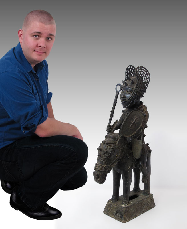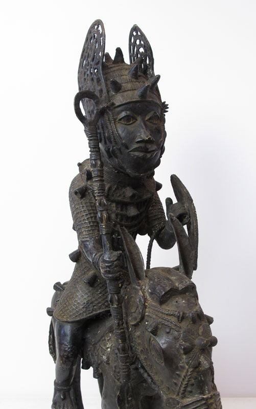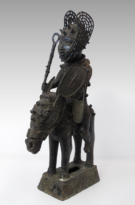 BENIN AFRICAN WARRIOR ON HORSE SCULPTURE: 35 3/4'' h. x 10'' x 20 1/2''.