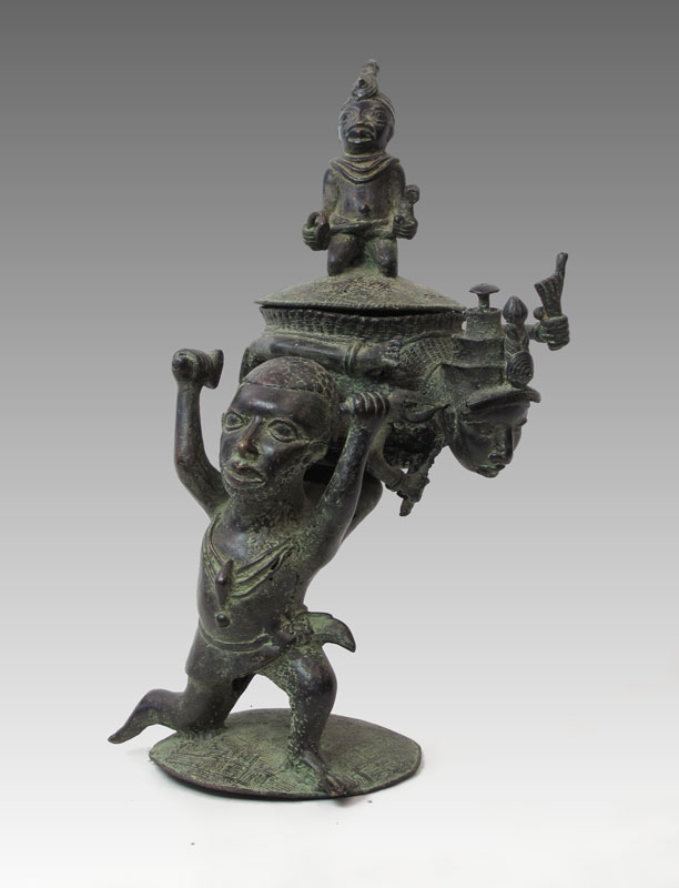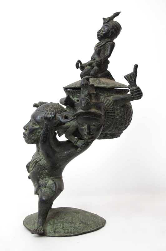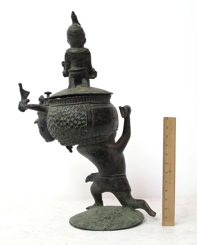 AFRICAN BRONZE FIGURAL OFFERING POT SCULPTURE: Approx. 23'' h. x 14'' x 11 1/2''