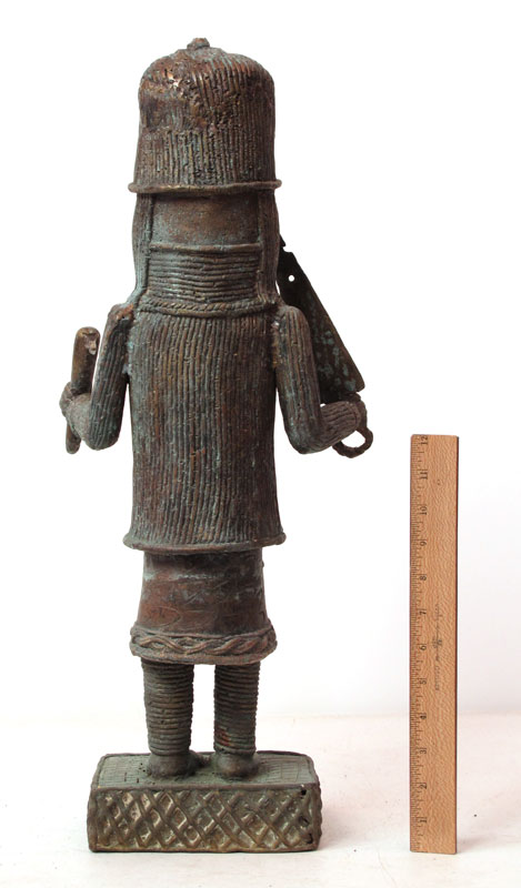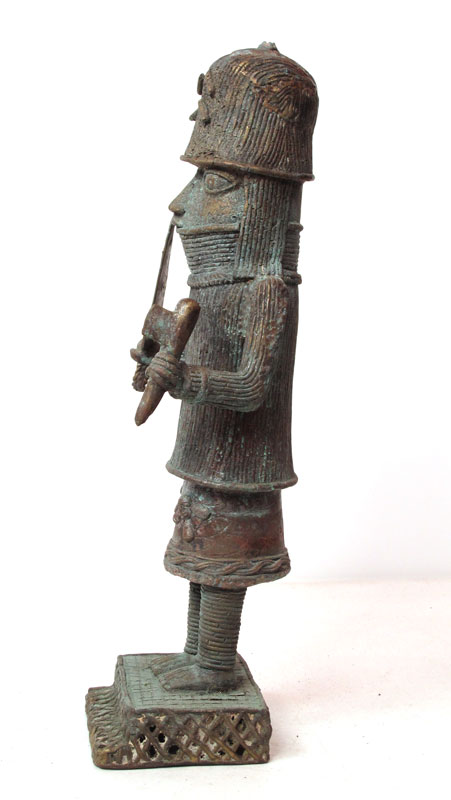 AFRICAN BRONZE WARRIOR SCULPTURE: Approx. 2' h. x 10'' x 7''