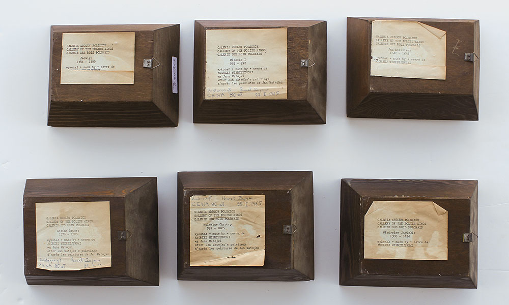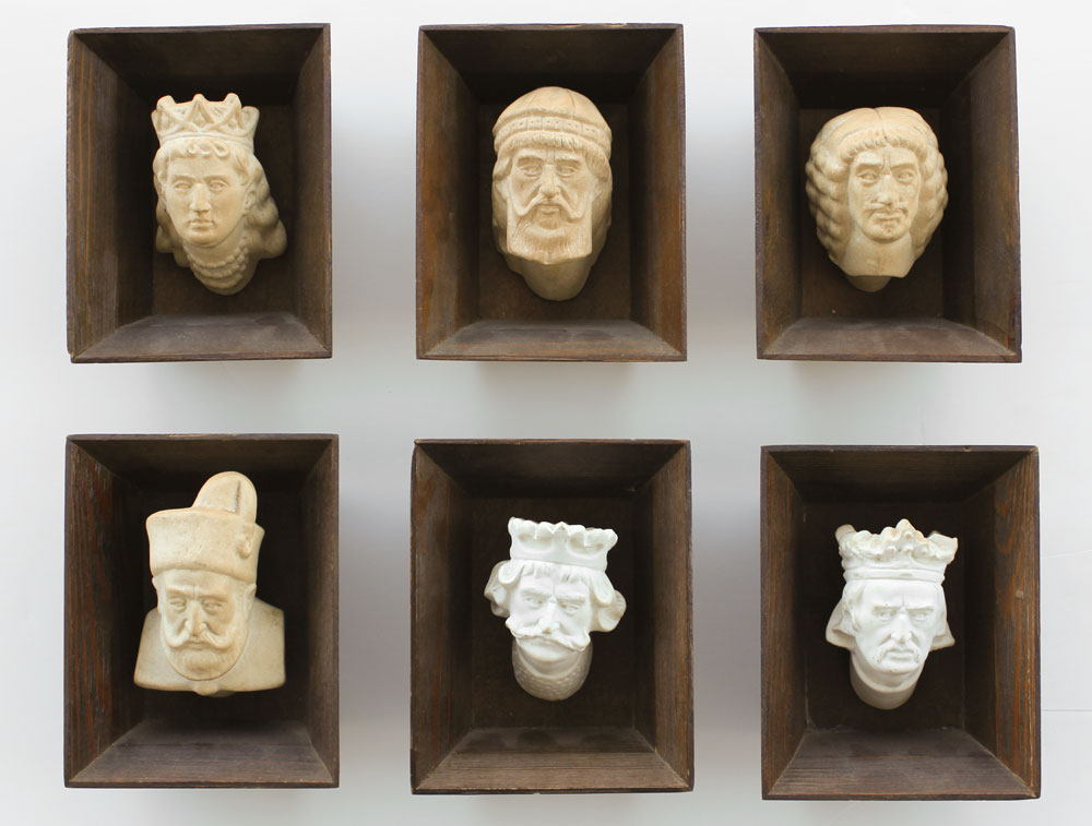 SIX BISQUE BUST SCULPTURES OF POLISH KINGS BY MIERZEJEWSKI AFTER MATEJKO: Approximately 4'' x 3'', shadowbox style frames, 6 1/2'' x 5 1/2'', Gallery of the Polish Kings label on all of the frames visible verso.