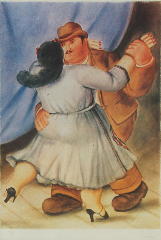 BOTERO, Fernando, (Columbia, 1932-): ''Los Bailadores'', Lithograph, 17'' x 12 1/4'', Signed lower right in pencil, numbered in pencil lower left d/3, with raised seal.