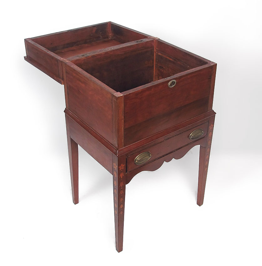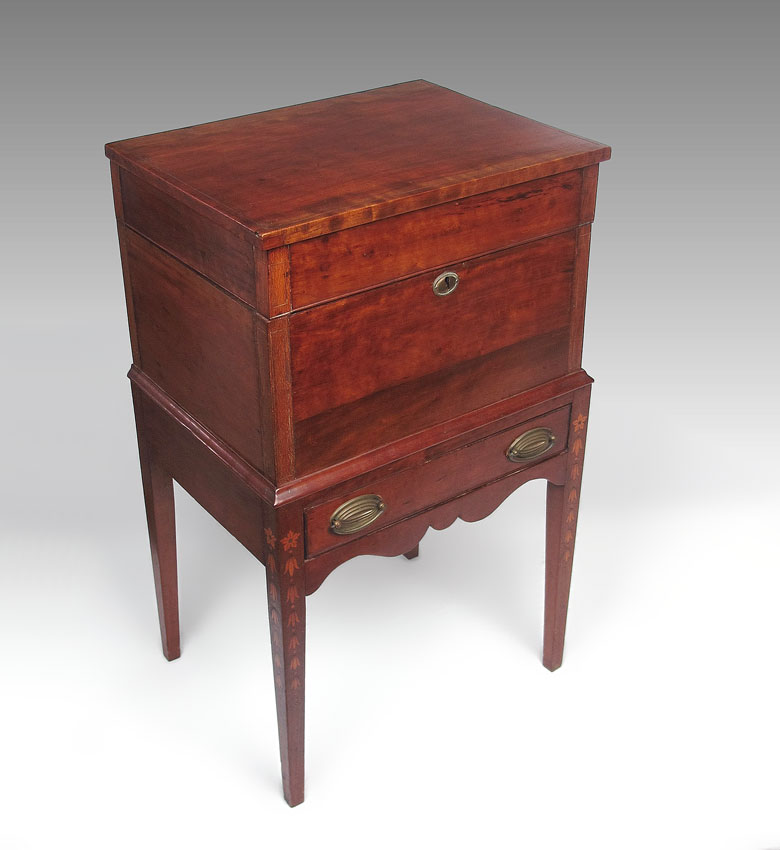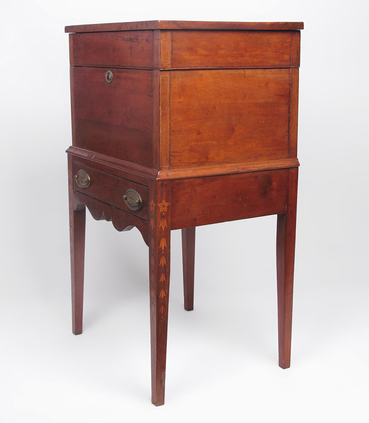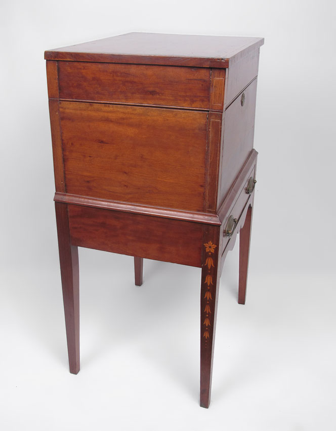 19TH CENTURY SUGAR STAND: Two part storage and stand. Subtle string inlay. 31 3/4'' x 19'' x 14 1/2''.