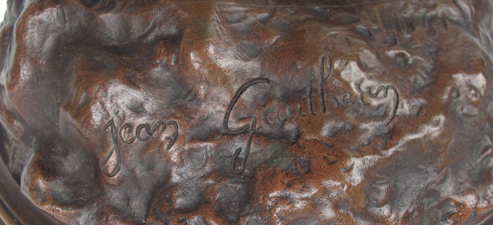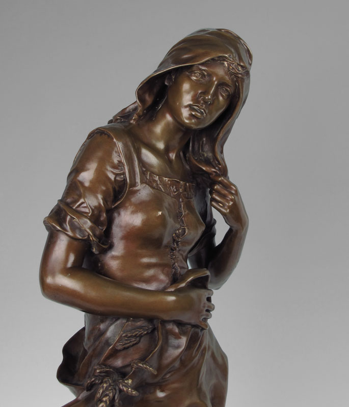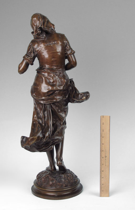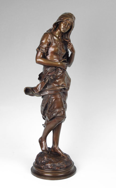 GAUTHERIN, Jean, (French, 1840-1890): Young Peasant Girl; Bronze, 27 1/2'' h., incised signature, French foundry mark.
