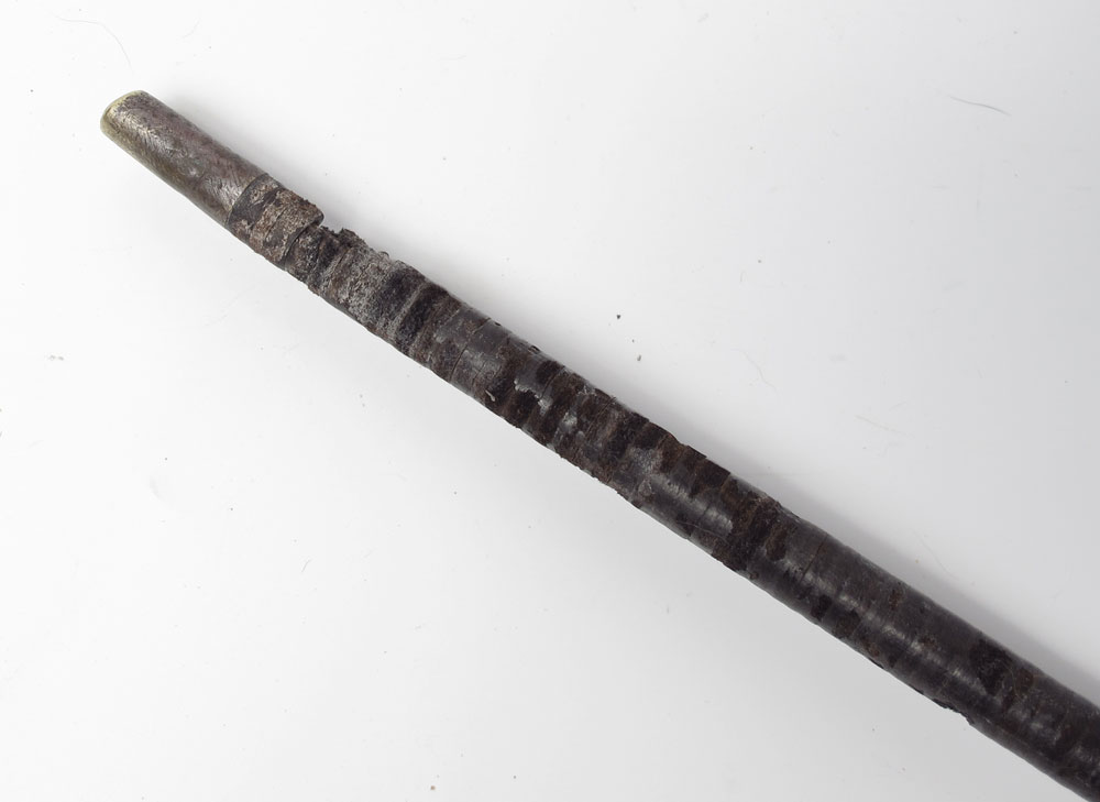 CONDITION: Scuffs and missing leather on wrap, expected dings to silver.