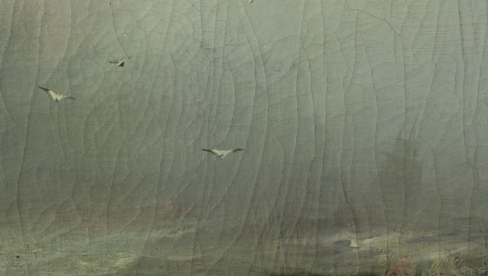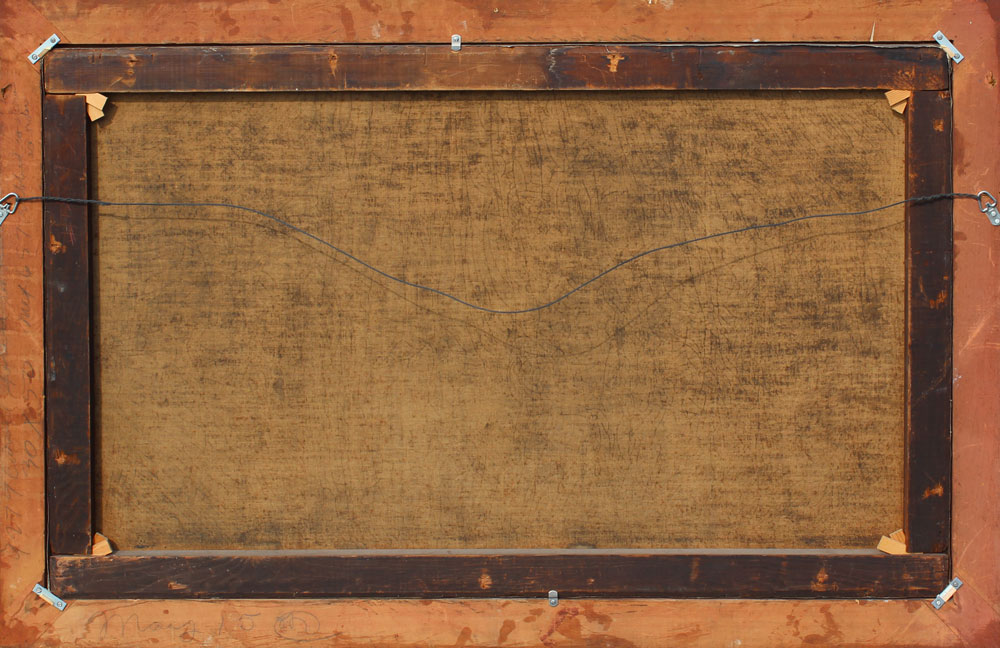 CONDITION: Relined, craquelure throughout, and stretcher bar wear.