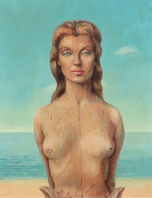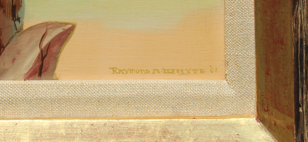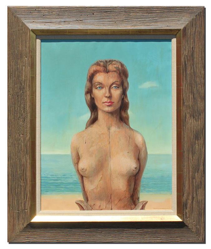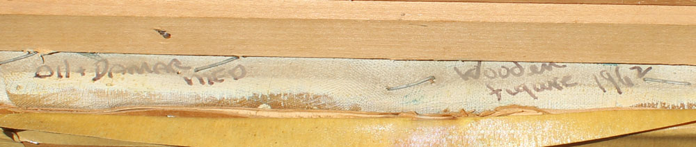 WHYTE, Raymond, (American, 1923-2002): ''Wooden Figure'', Oil/Canvas, 26'' x 20'', signed lower right, dated 62, signed on the canvas, stretcher margin verso, titled and dated, fine period distressed frame with gilt liner, 35 1/2'' x 29 1/2''.