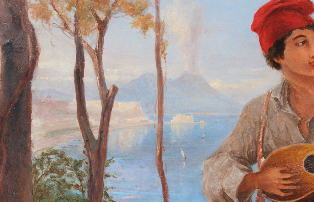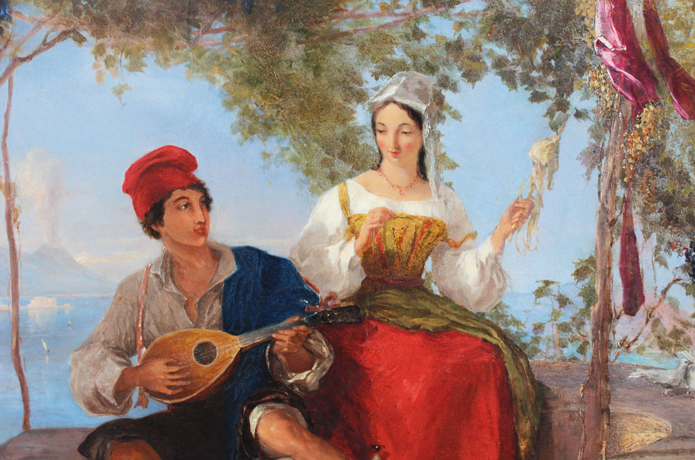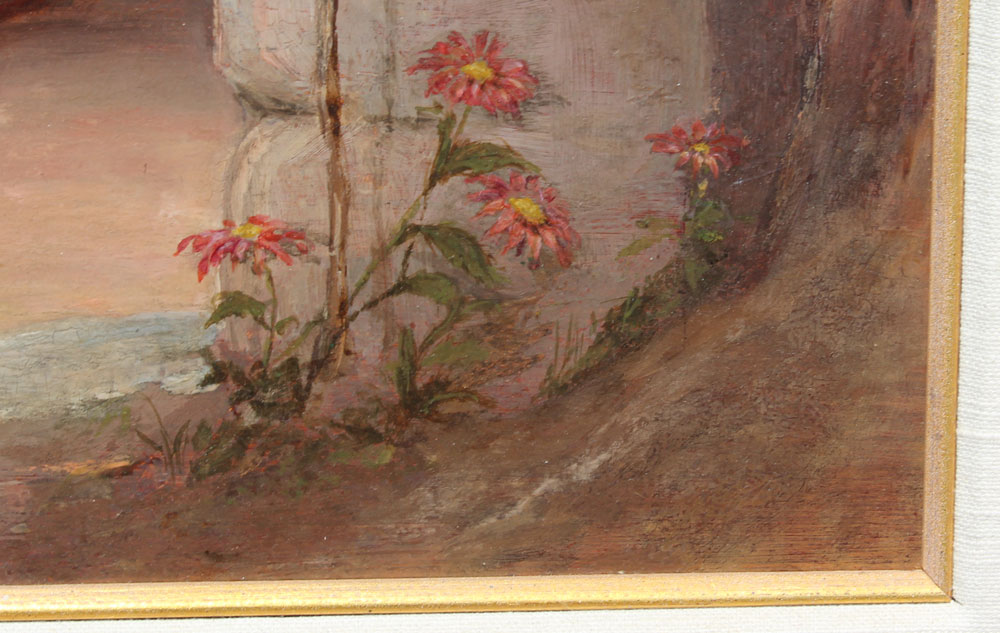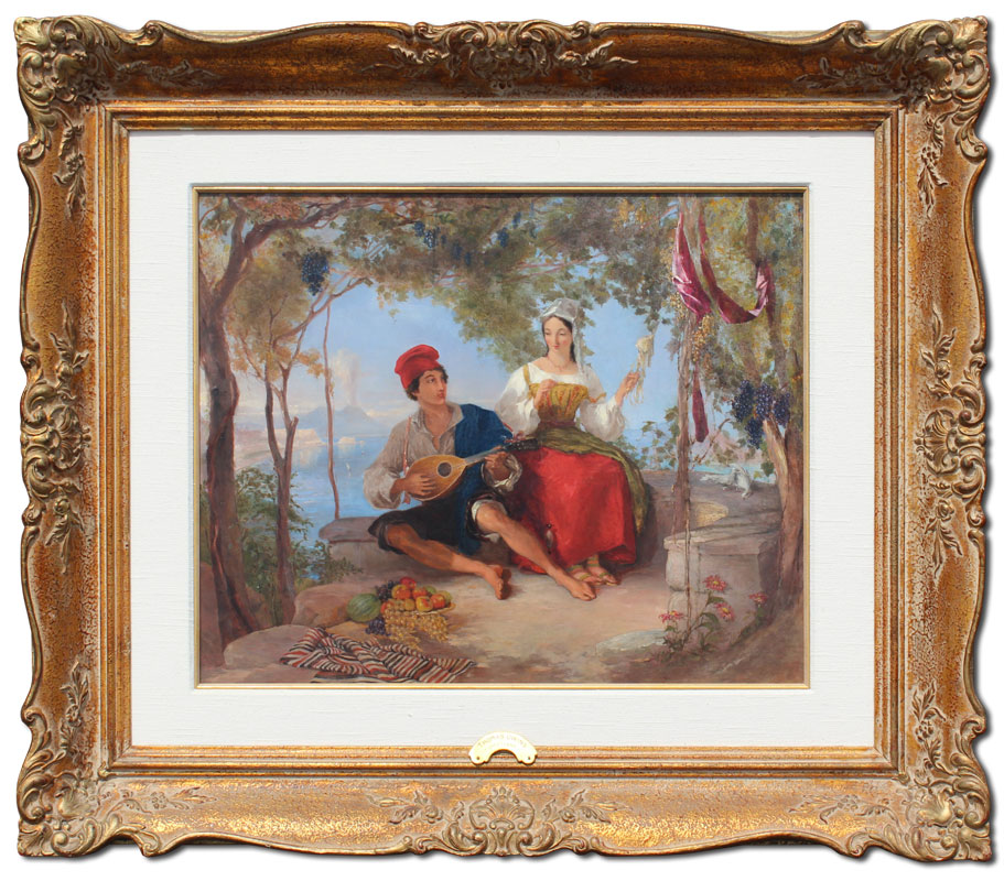 UWIN, Thomas, (English, 1782-1857): ''Bower in a Vineyard near Virgil's Tomb Naples'', Oil/Panel, sight size 19 1/2'' x 24'', signed and titled on the panel verso, gilded and carved gesso frame with repair, 33'' x 37 1/2''.