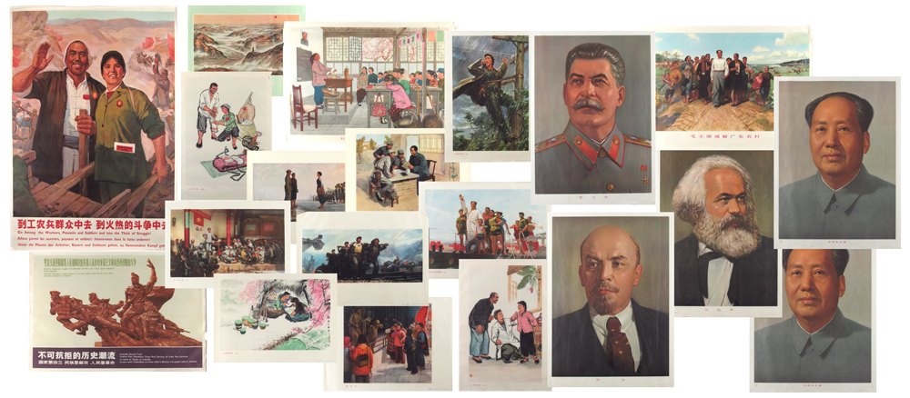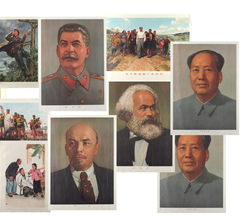 20 PIECE 1950'S-60'S CHINESE PROPAGANDA POSTERS: To include inspirational posters, Mao, Lenin, Stalin and Marx. Largest poster measures 41'' x 30''. Sleeves not included with posters.
