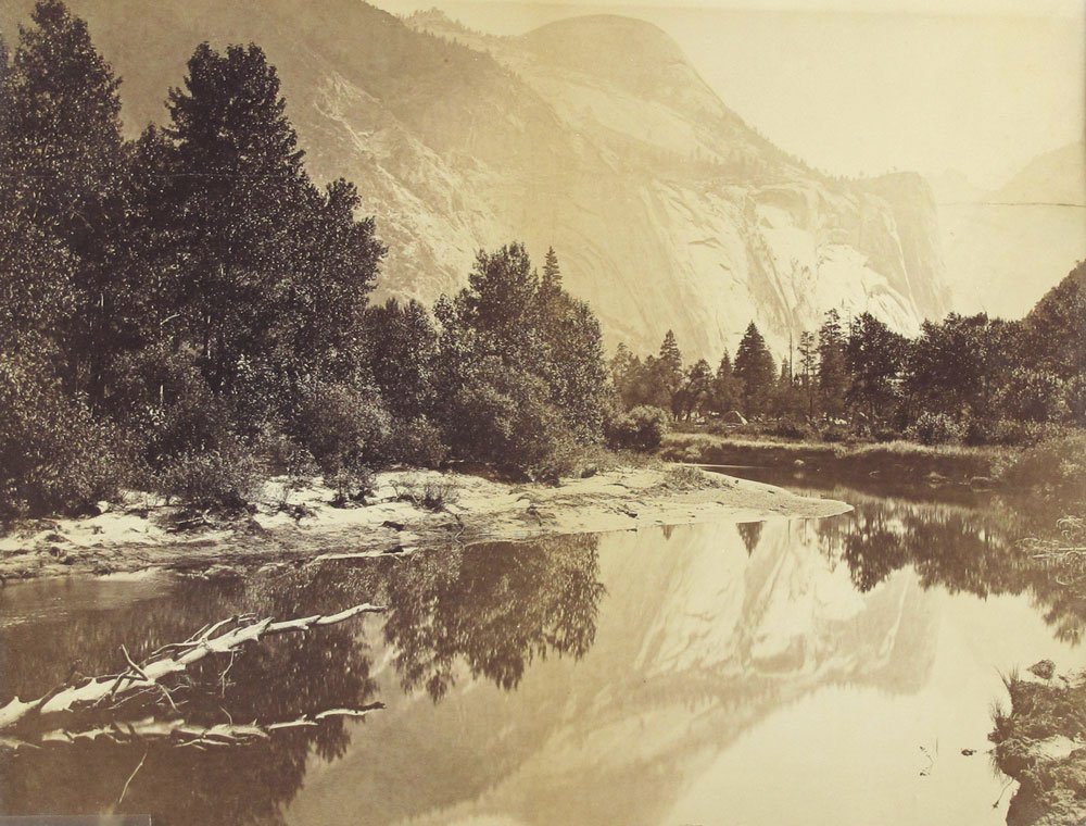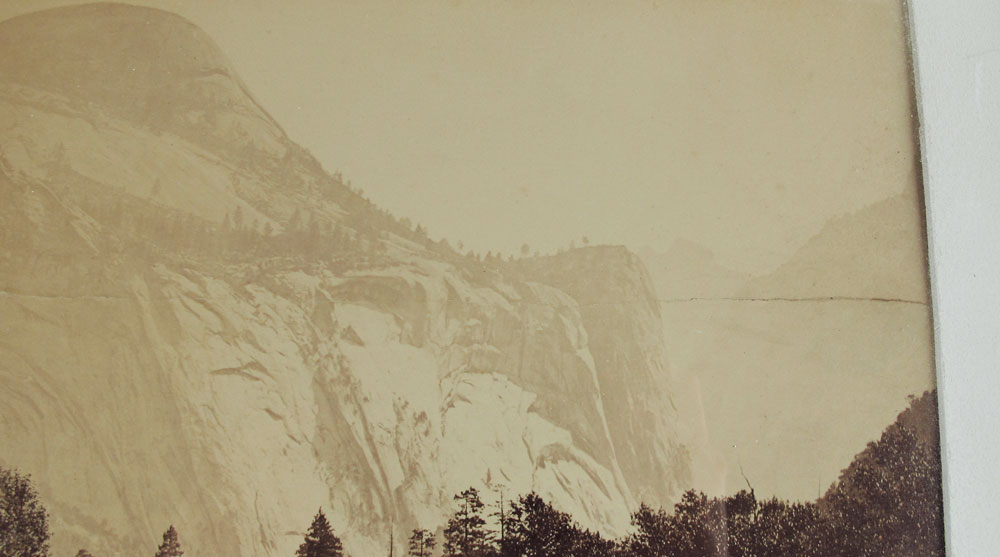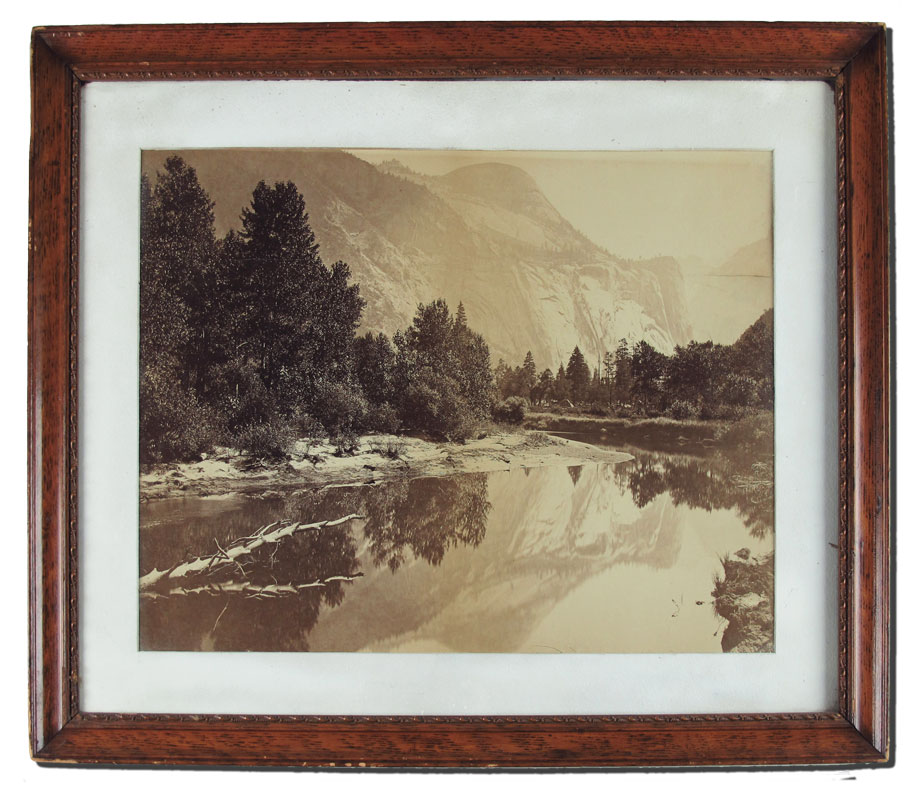 WATKINS, Carleton E. (American, 1829-1916): Large format albumen print of scene of North Dome at Yosemite. Sight size 15 3/4'' x 20 1/2'', framed and matted 21 1/2'' x 26 1/2''.