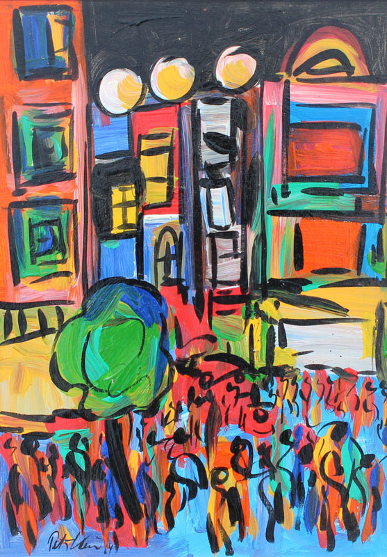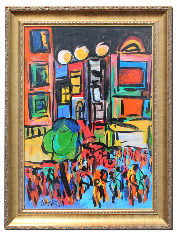 KEIL, Peter (German, 1942): ''On Broadway'', Oil/Masonite, 27 1/2'' x 19 1/2'', signed lower left, dated 84, signed and titled verso, gilded gesso frame with minor wear, 33'' x 24 1/2''.
