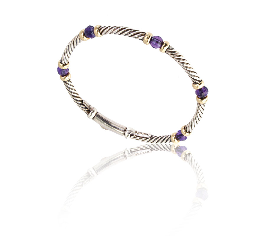 DAVID YURMAN CABLE BRACELET: 18K yellow gold and sterling silver bracelet with faceted amethyst beads. Length: 6''. Signed David Yurman.