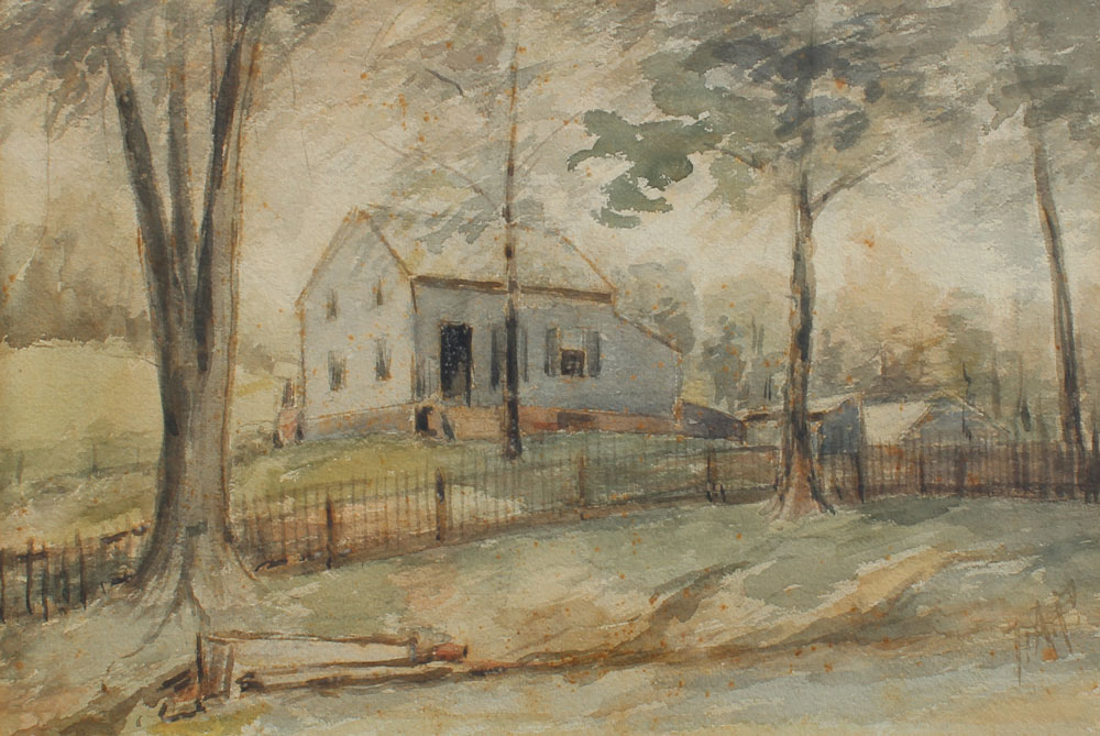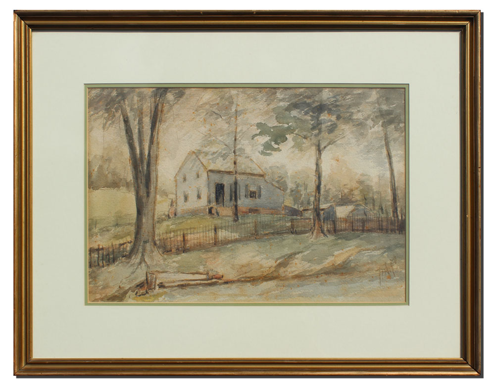 PERKINS, F.A., (American, Late 19th Century): Landscape with Farmhouse, Watercolor, sight size 11 1/4'' x 17 1/2'', monogrammed lower right, framed, 19 1/2'' x 25 1/2''.