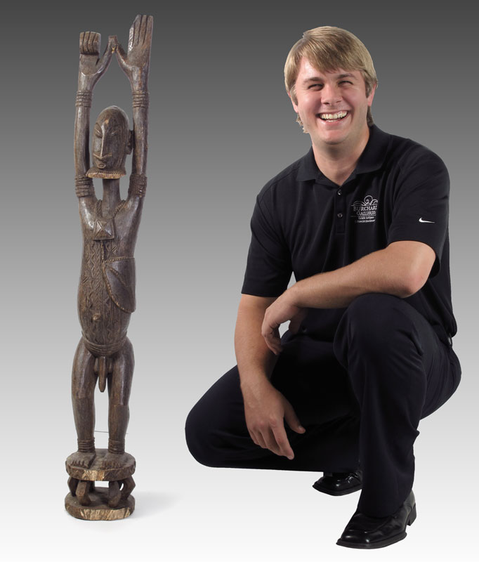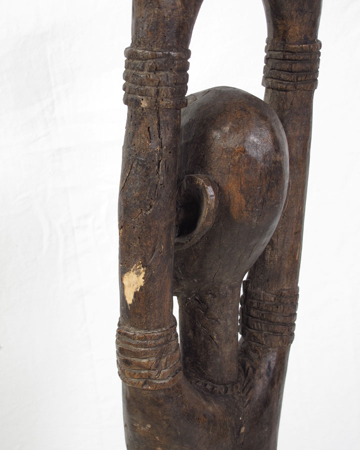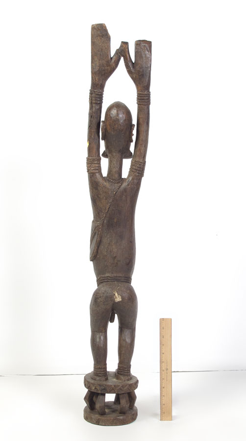 CARVED AFRICAN DOGON FIGURE: 15 1/2 LBS., 45'' x 7'' x 7''.