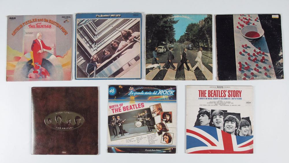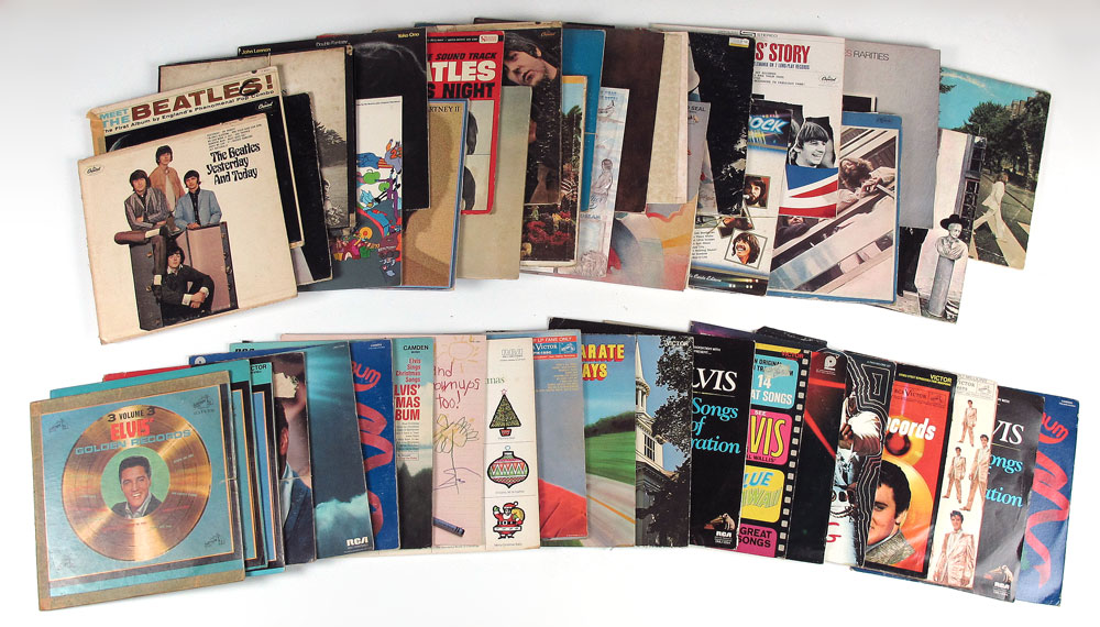 COLLECTION OF BEATLES & ELVIS RECORDS: To include 22 Beatles and assorted solo project albums. Set includes Yesterday and Today, which has all the earmarks of being a 2nd state ''Butcher Cover'' album, but we cannot guarantee it as such. Sold with 21 assorted Elvis records, most from the 60's and 70's, some duplicates. Most appear to compilations and gospel recordings.