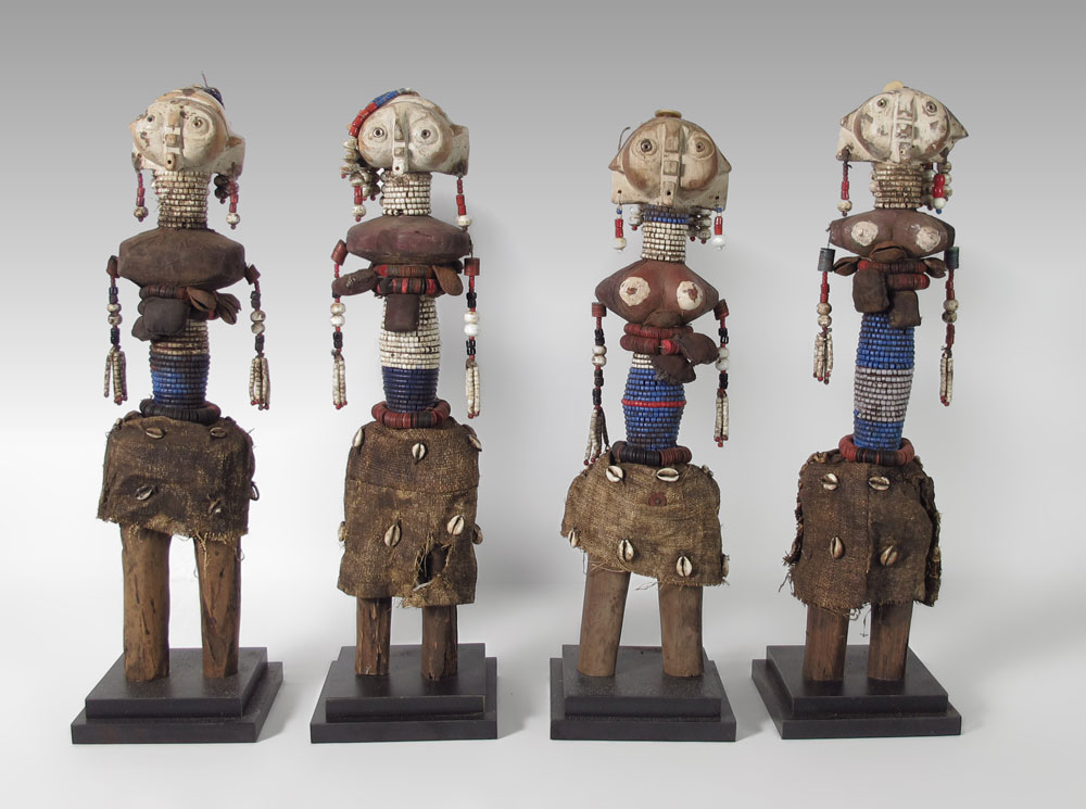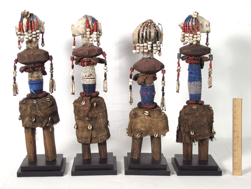 4 CARVED AFRICAN NAMJI FERTILITY DOLLS - CAMEROON: 6 LBS, 5 1/2 LBS., 5 1/2 LBS., & 5 LBS., 25'' x 7'' x 7'' ON BASE, ALL APPROX. SAME.